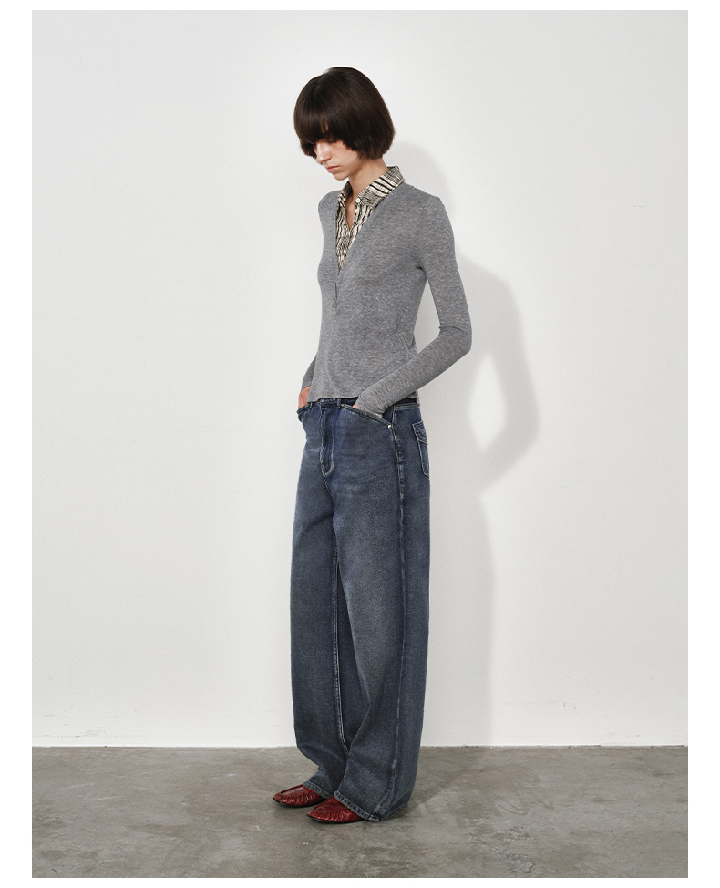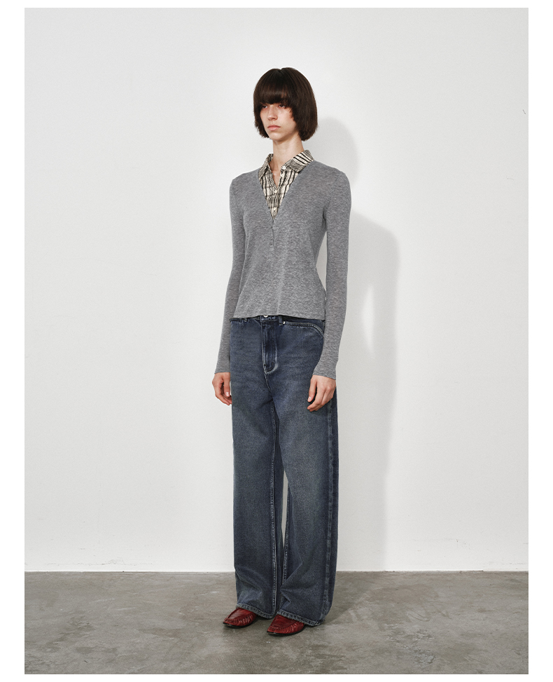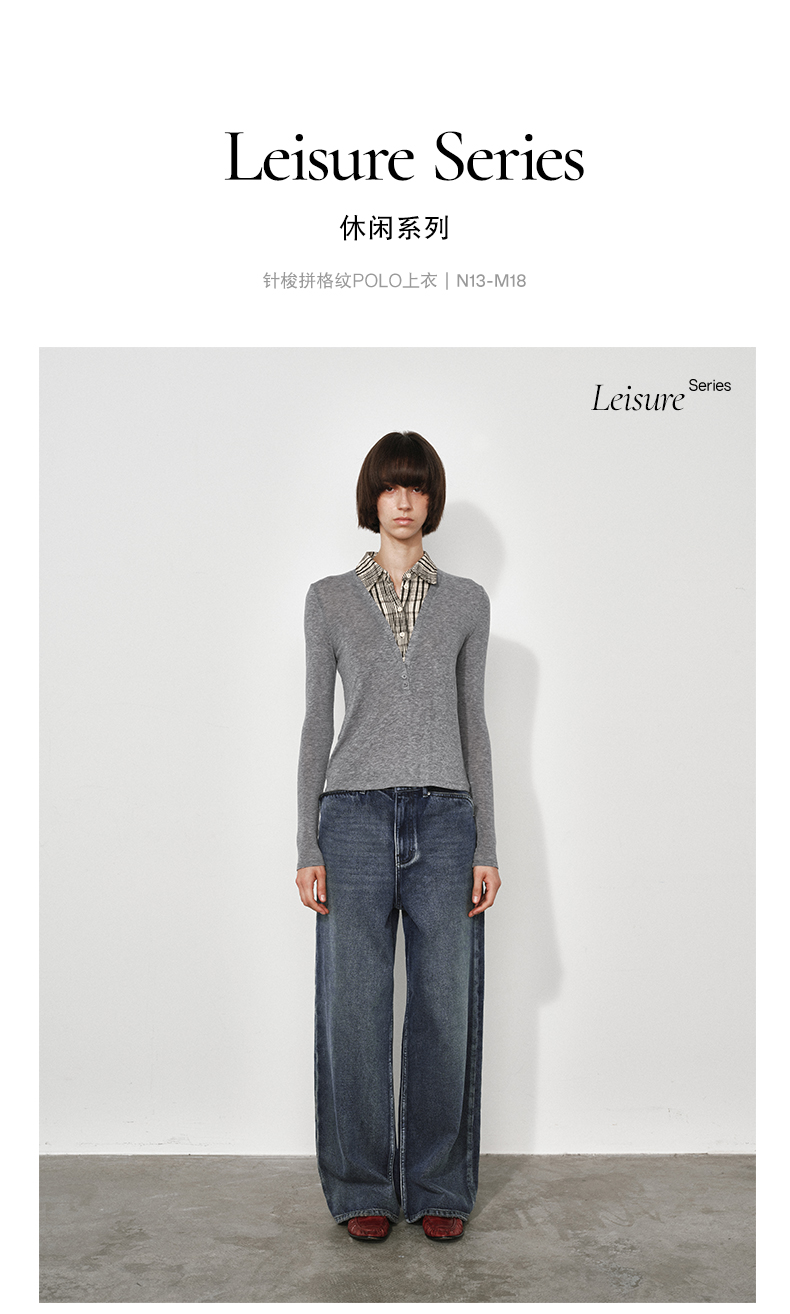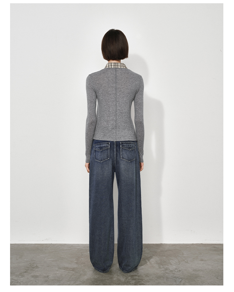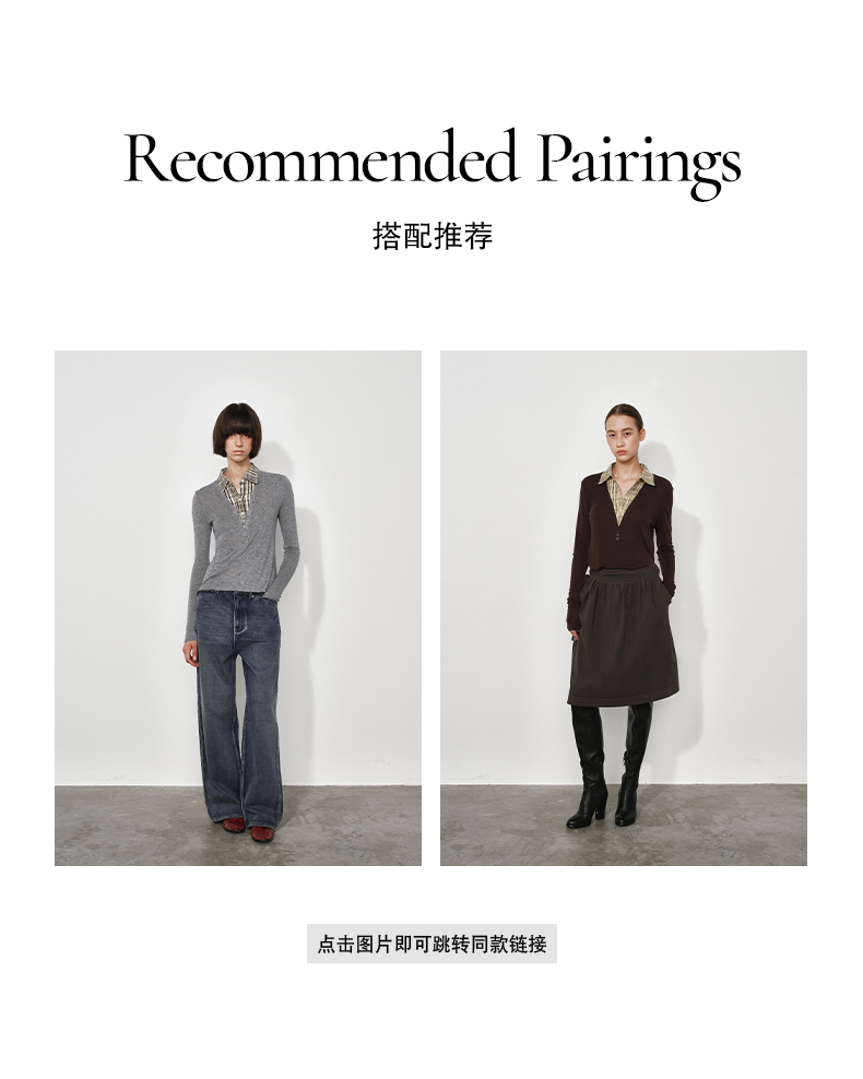 NUTH 格纹拼接假两件针织t恤宽松薄款长袖针织衫上衣女