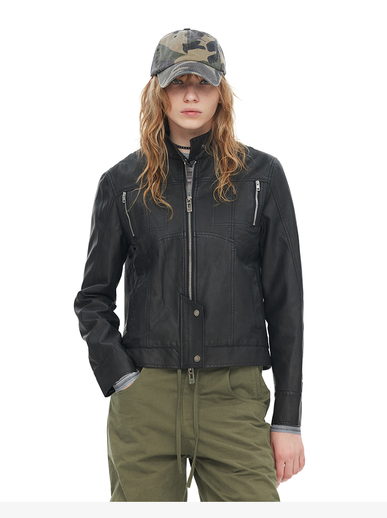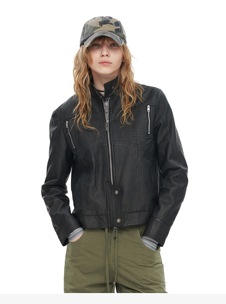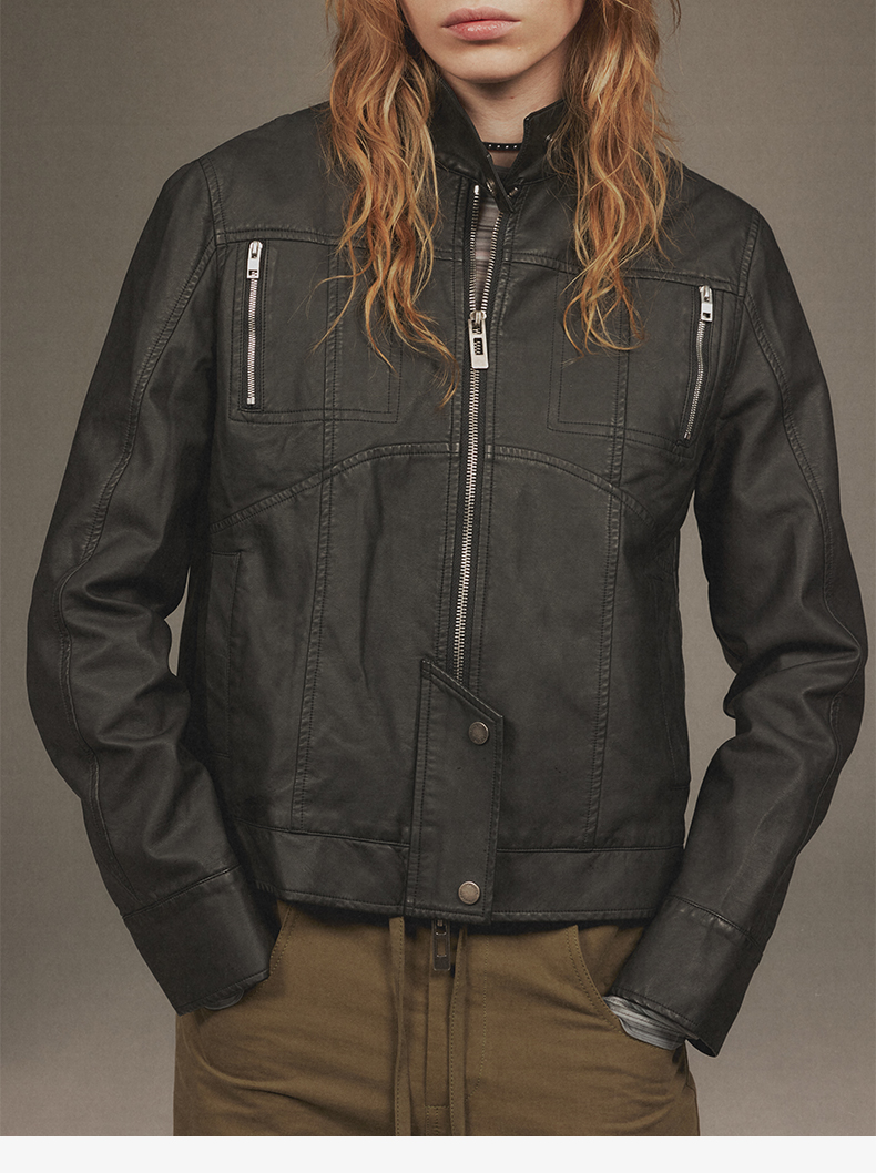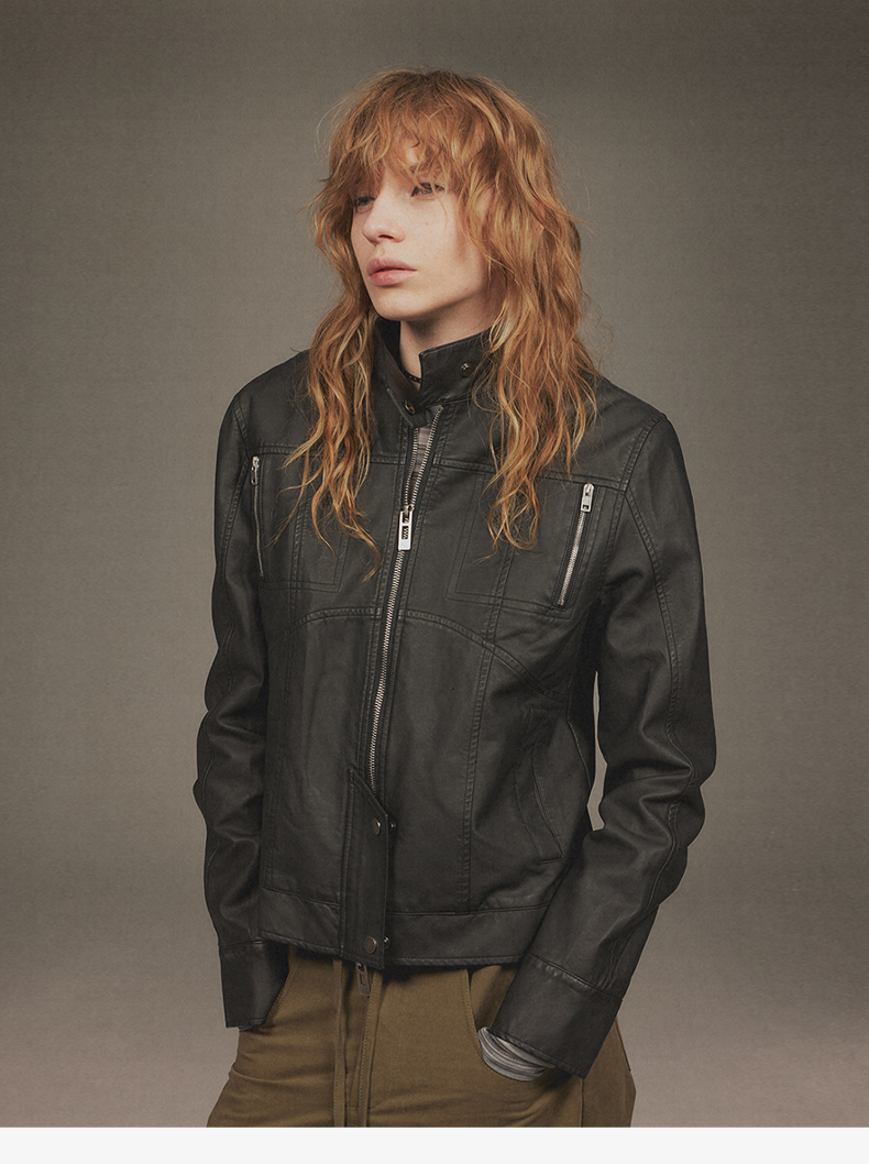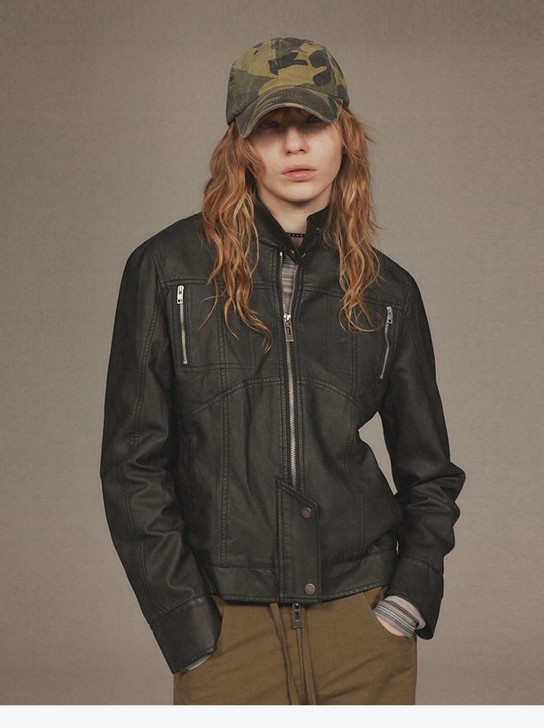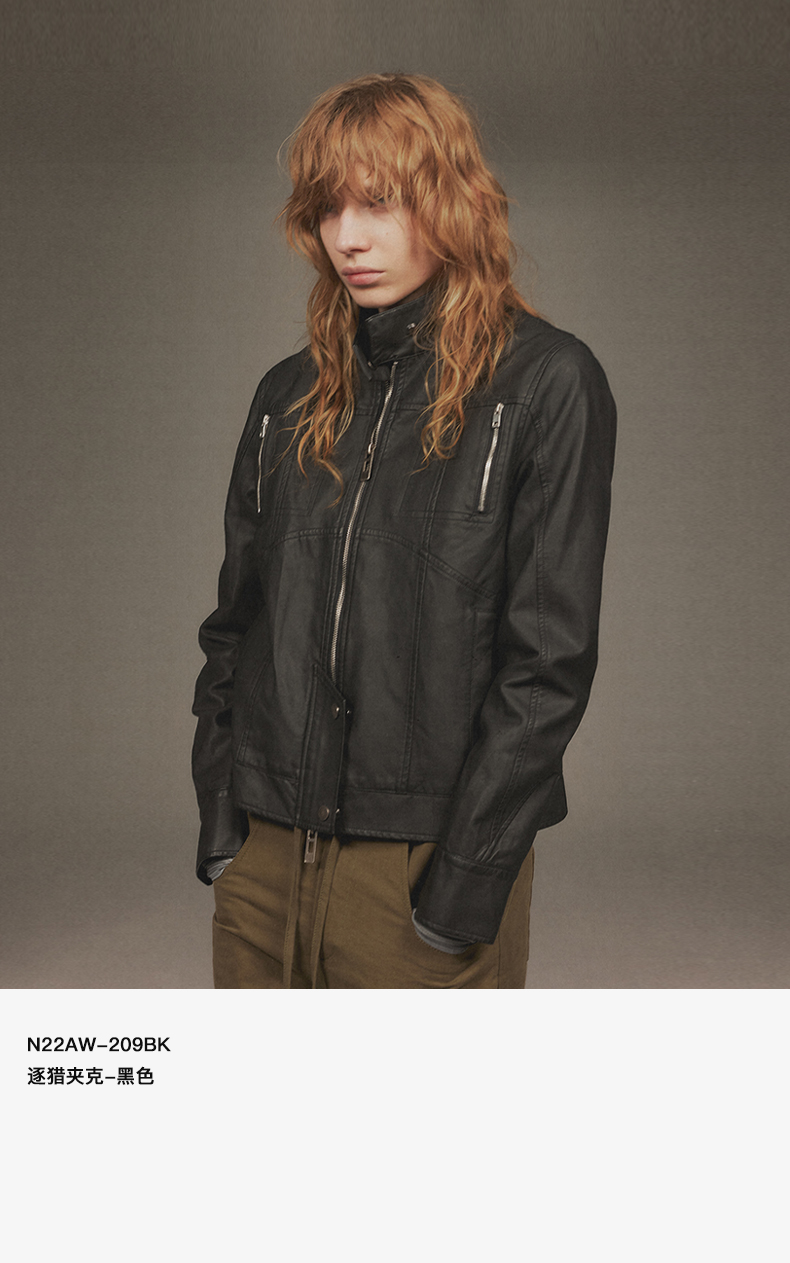 NUTH“逐猎”|黑色修身皮衣做旧结构分割线设计皮衣外套