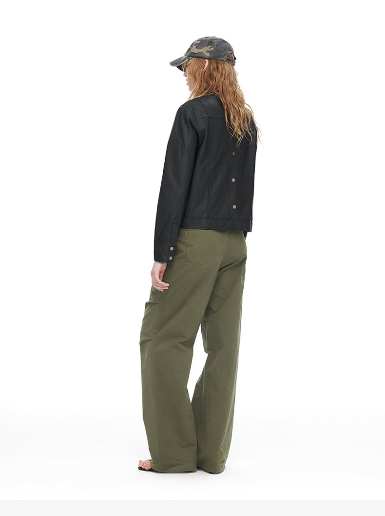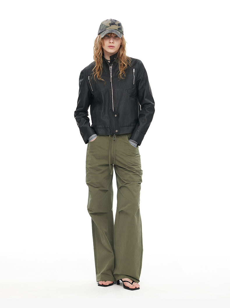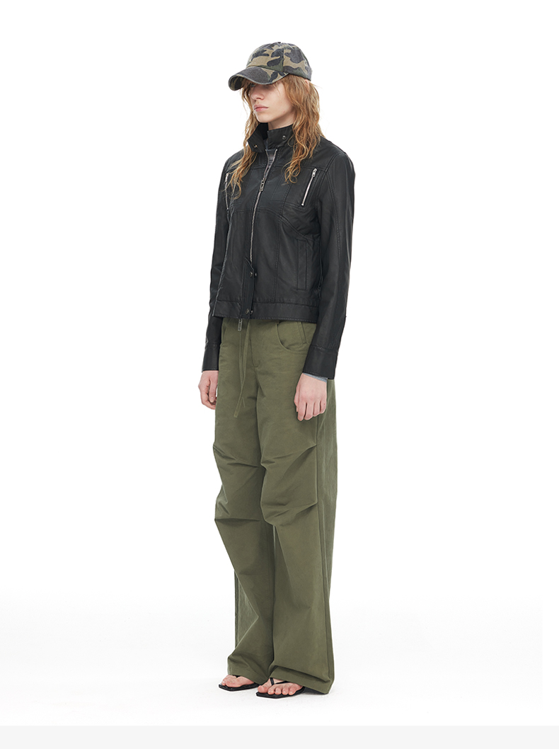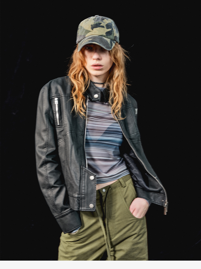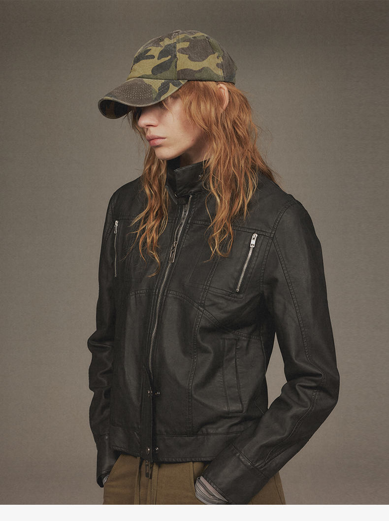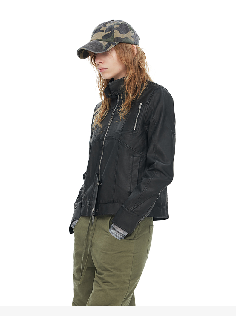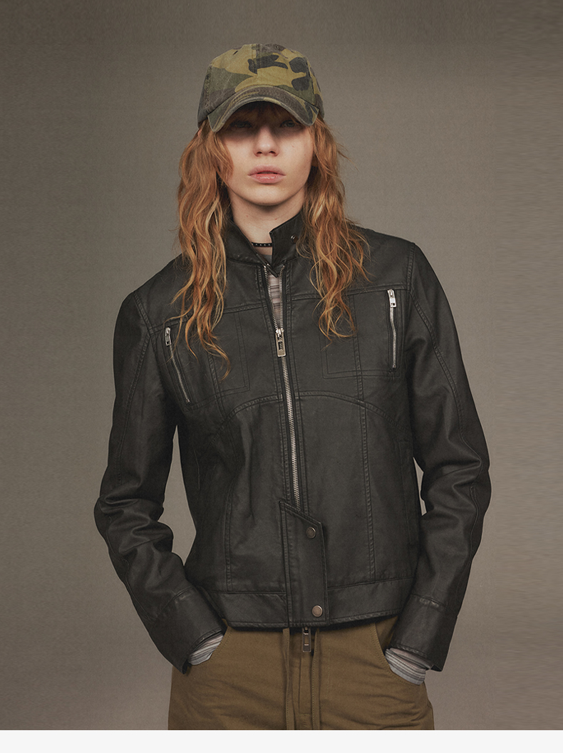 NUTH“逐猎”|黑色修身皮衣做旧结构分割线设计皮衣外套