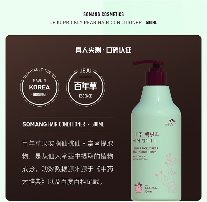 所望济州岛百年草护发素干枯毛躁头发持久留香蓬松丰盈护发乳 500ml/瓶