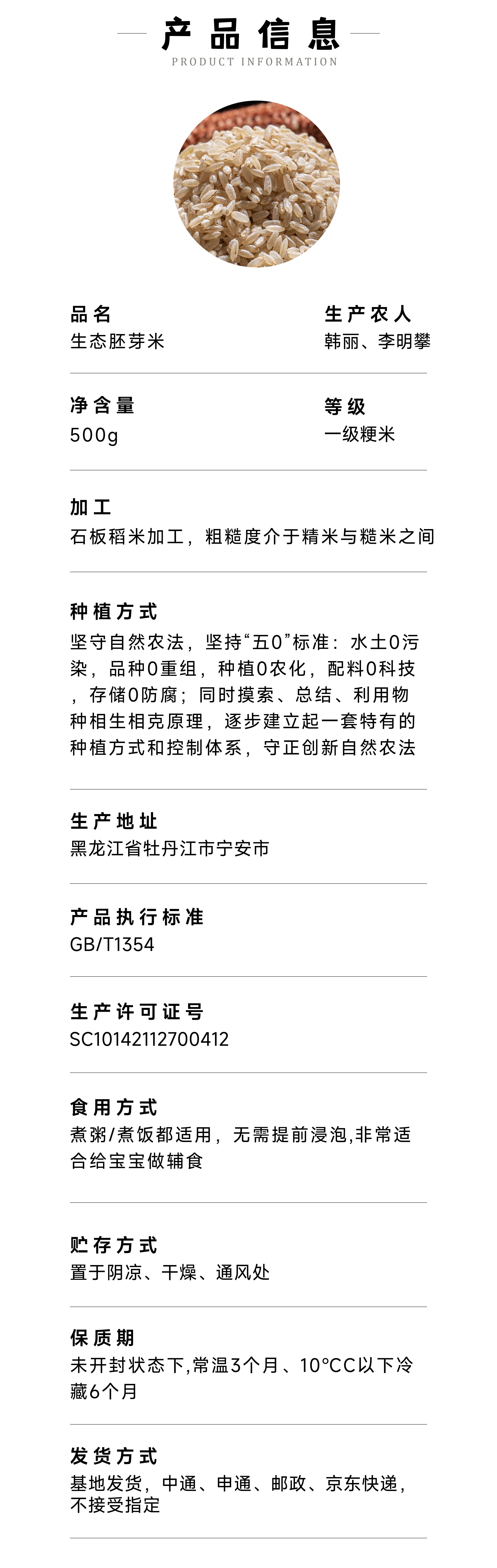 【2025年秋收新米】生态胚芽米 500g/袋*2 | 合作农友生产,产自黑龙江牡丹江,生产者是:韩丽、李明攀 *【公平贸易农人定价】