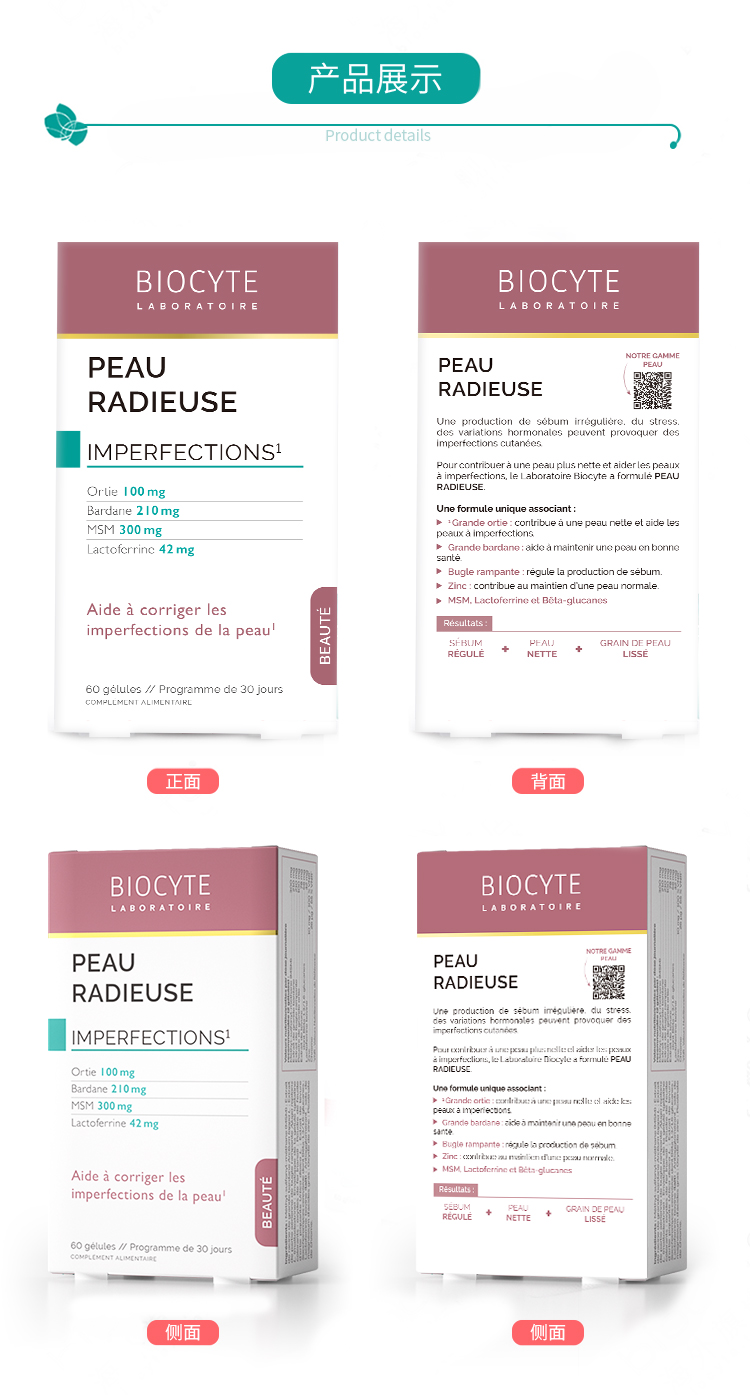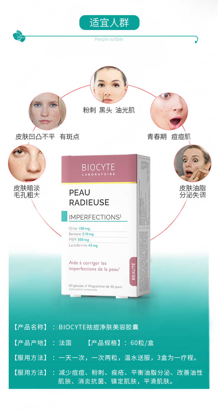 【营养师专属G】法国碧维斯Biocyte控油祛痘胶囊淡痘印 内服调理修复养生D