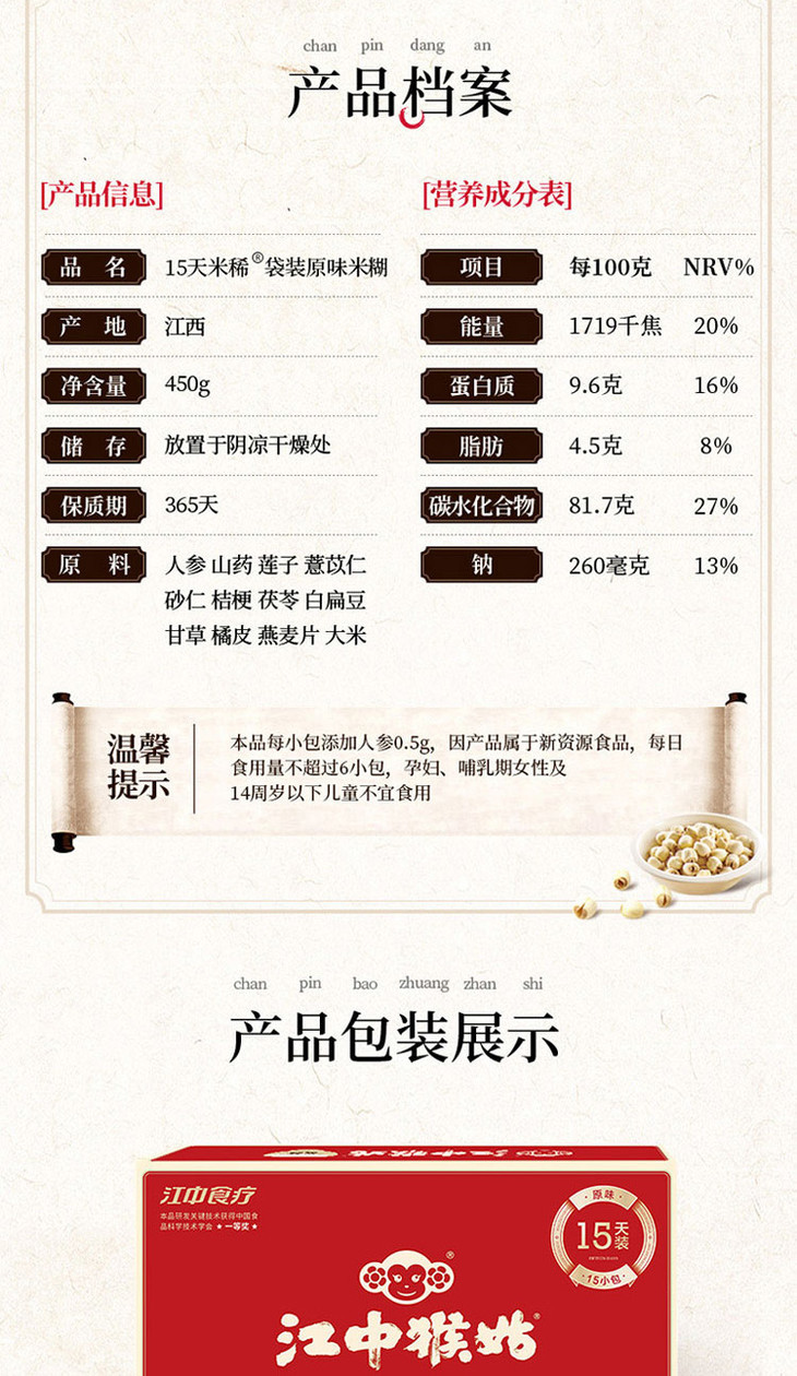江中猴姑米稀450g(原味)每天一杯 科学养胃
