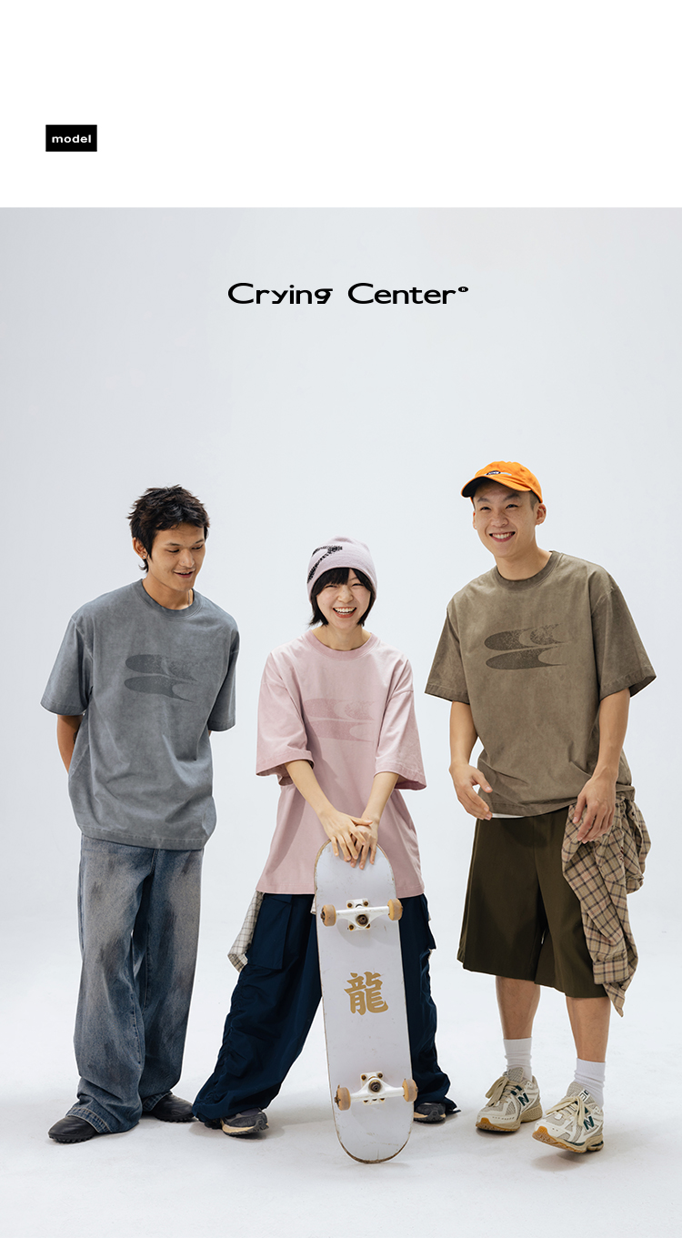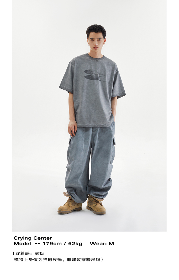 CryingCenter 做旧基础logo圆领宽松休闲短袖t恤 哭喊中心