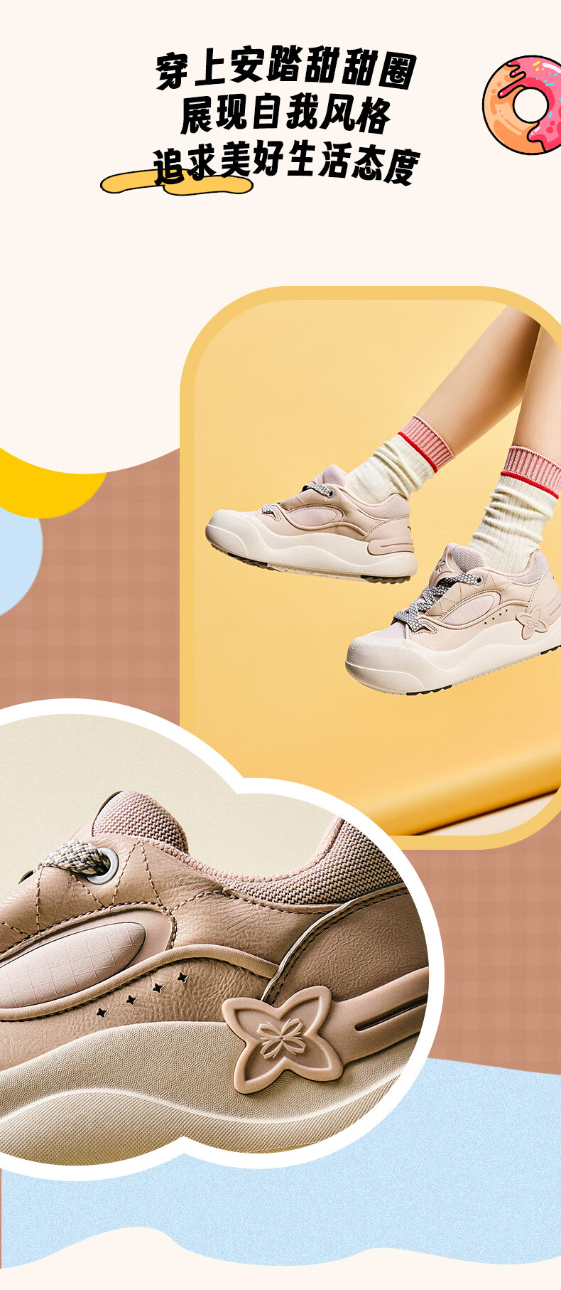 安踏甜甜圈丨休闲厚底面包鞋春季新款百搭时尚潮流运动板鞋122518030