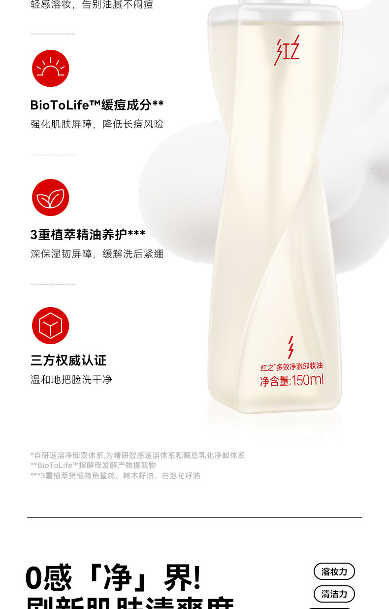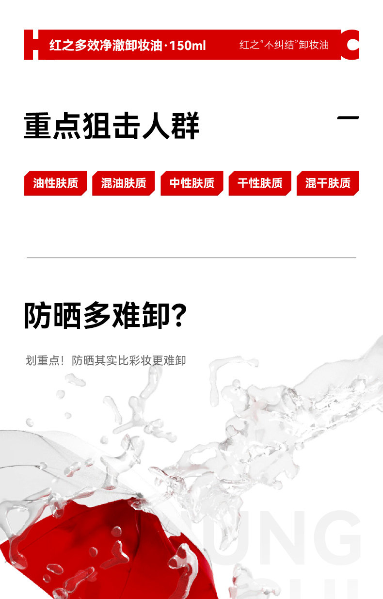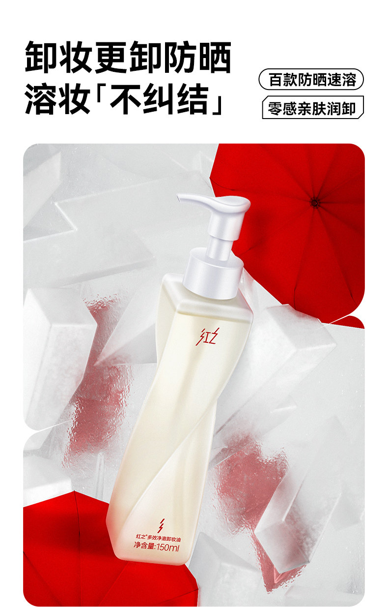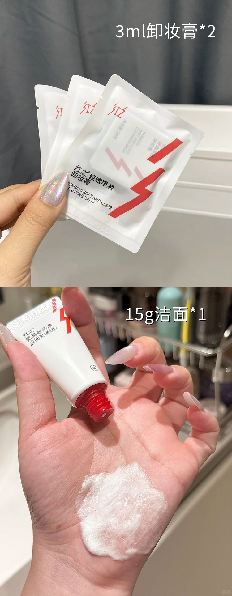 【红之多效净澈卸妆油套装】清爽净洁温和高效 卸浓妆更卸防晒(洁面150ml+洁面15g+卸妆膏3ml*2)