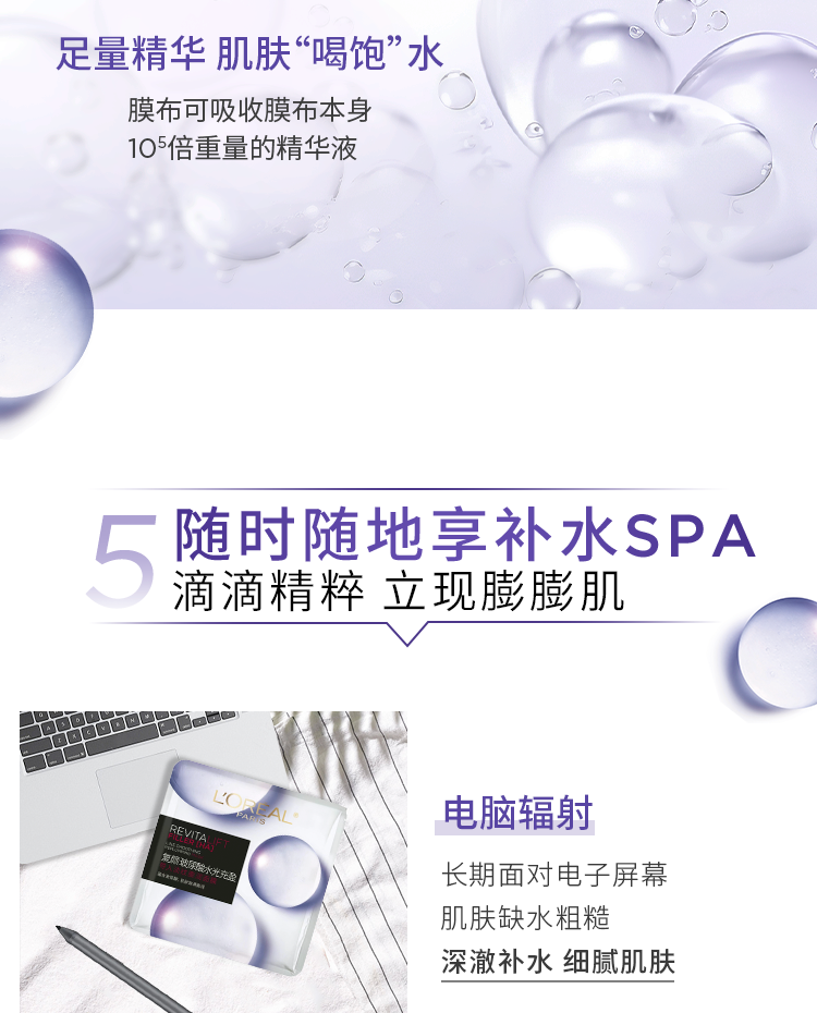 欧莱雅复颜玻尿酸水光充盈导入淡纹膨润面膜29gX15PC/盒(效期至26年12月)