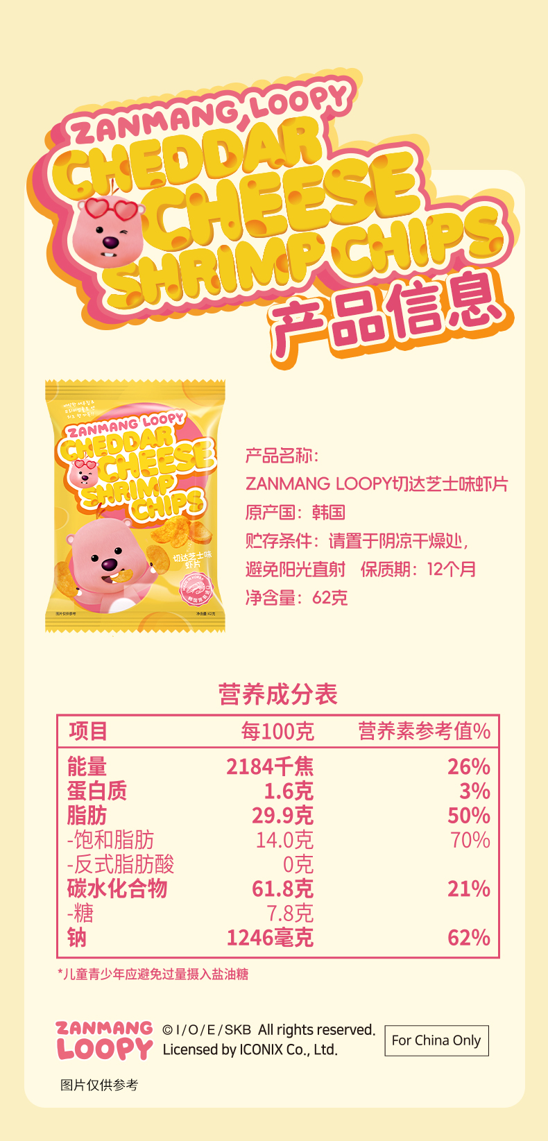 ZANMANG LOOPY 切达芝士味虾片 62g