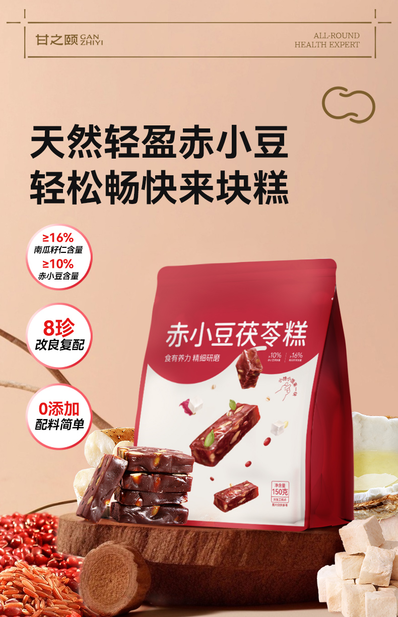 【限时秒杀,49.9/3袋,89.9/6袋】甘之颐 赤小豆芡实茯苓糕 150g/袋 薏仁山药芡实养生健康零食糕点休闲零食