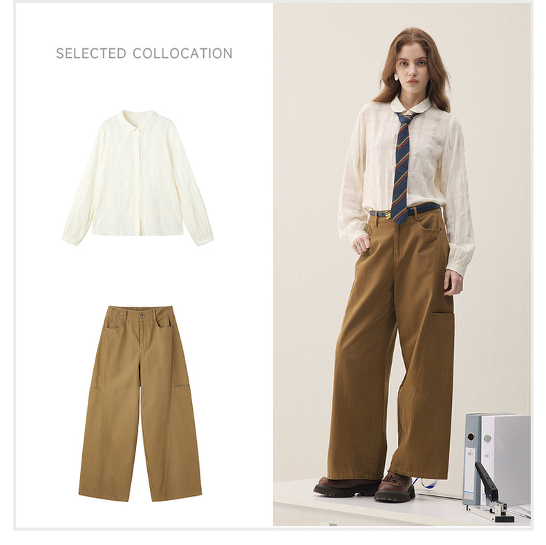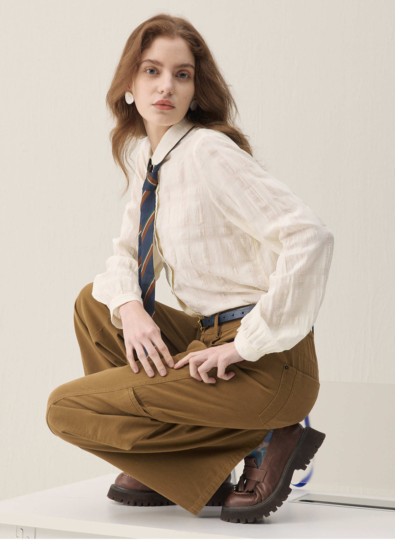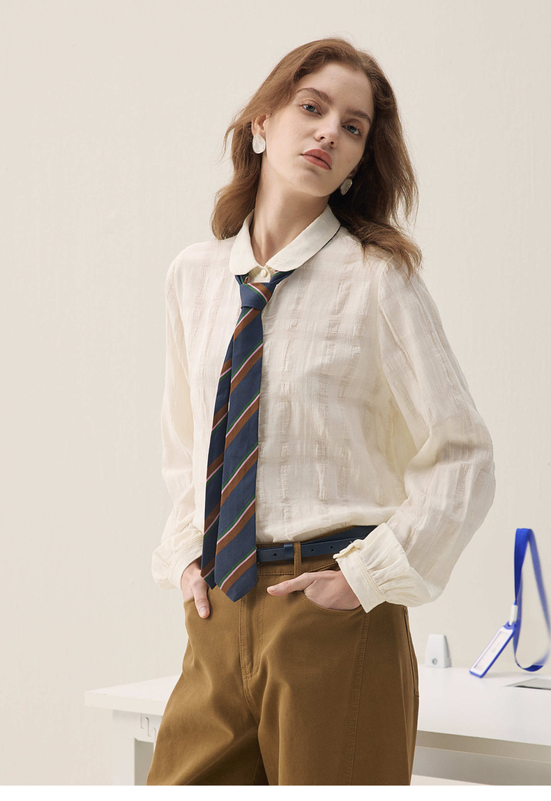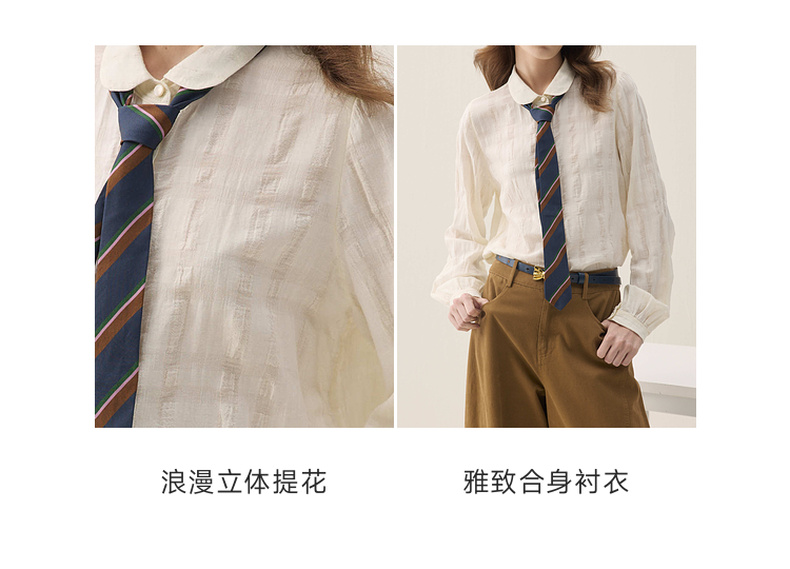 谜底立体提花衬衣长袖2026年春季新品奶油色雅致衬衫女261MC0242