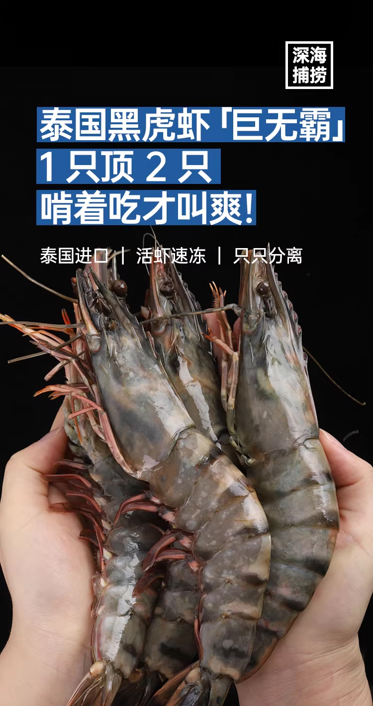 【渔礼记泰国活冻黑虎虾礼盒】壳薄肉嫩 晶莹剔透原装级品质大虾(2.5斤)(下单后3-4天发货)