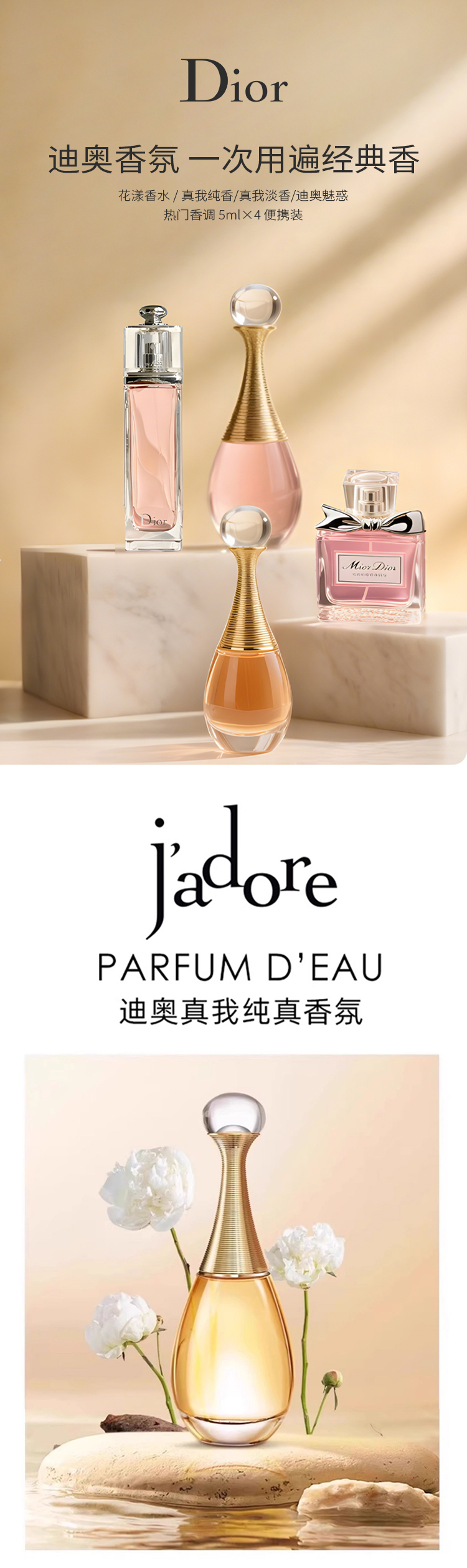 【DIOR/迪奥香水小样四件套】百元试迪奥经典香!一次拥有4种心动香,承包四季氛围感!下单还送迪奥品牌化妆包!(迪奥甜心5ml+真我淡香5ml+真我纯香5ml+魅惑淡香5ml)