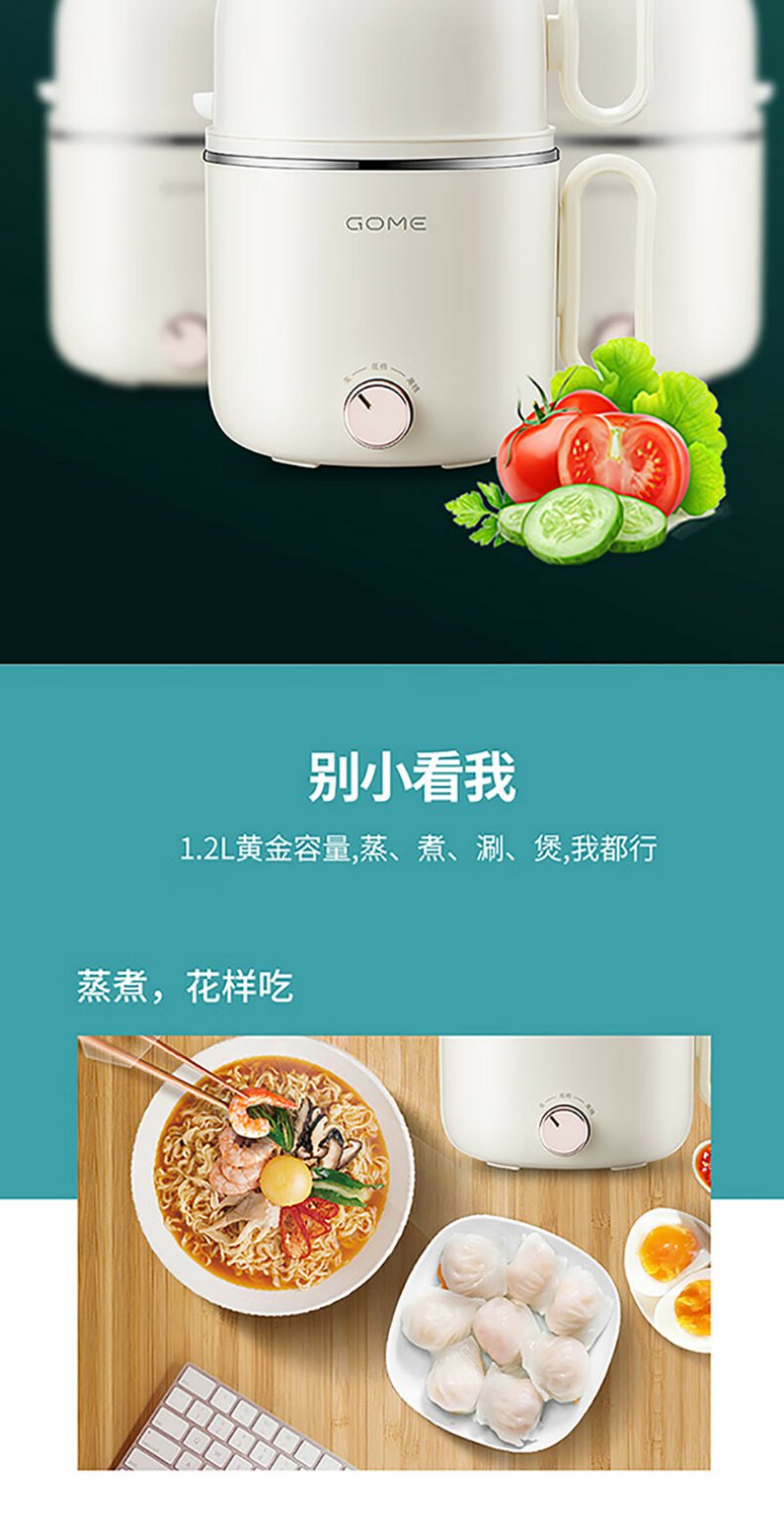 国美 多功能电煮锅 防烫手柄多功能电煮锅1.2L GMZG-A5124