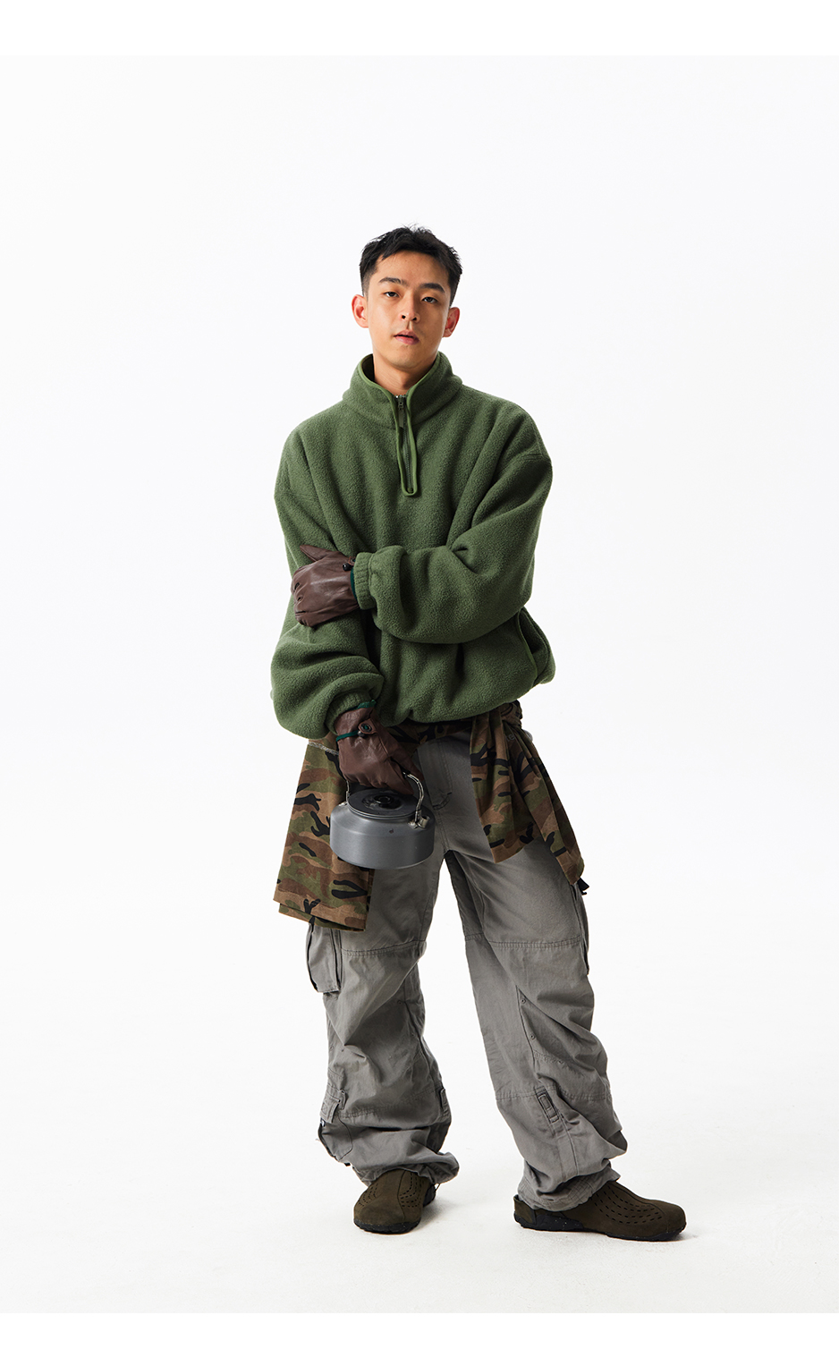CryingCenter立领摇粒绒宽松户外重磅抓绒套头卫衣男女款哭喊中心