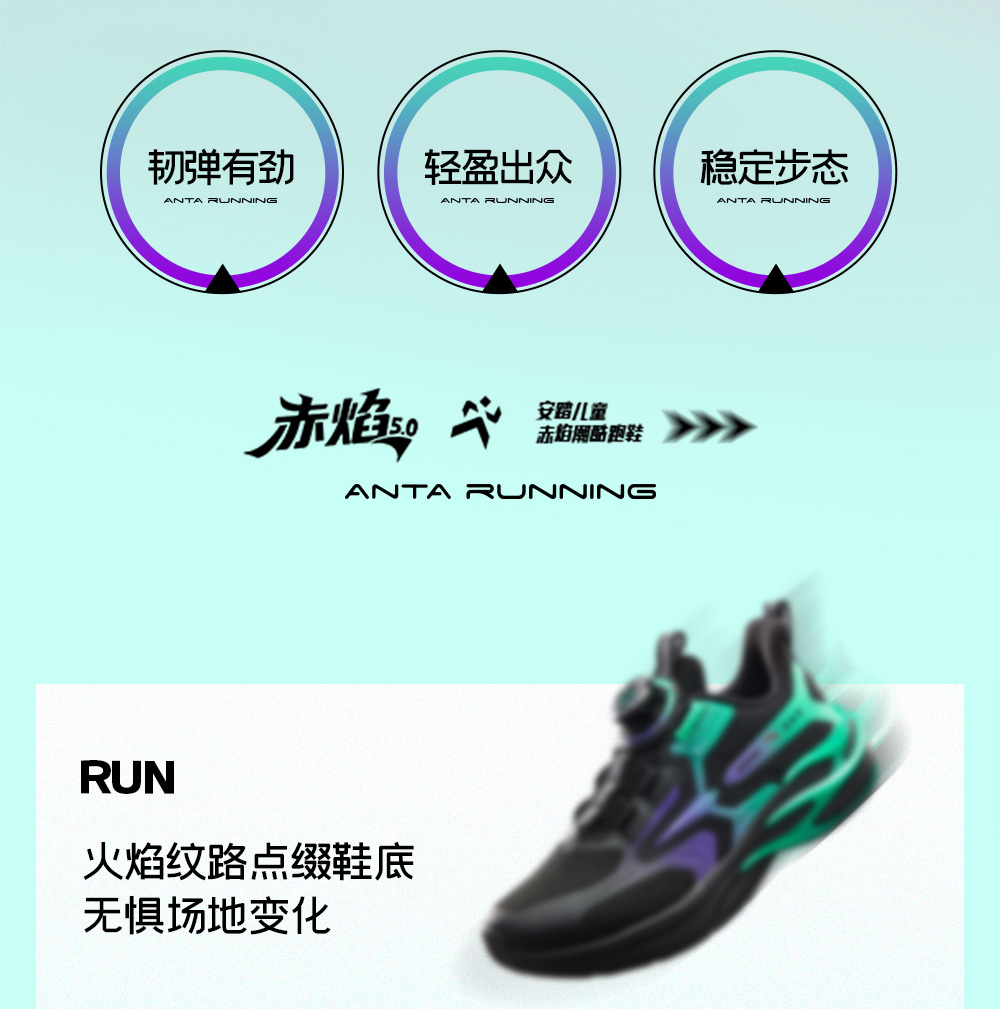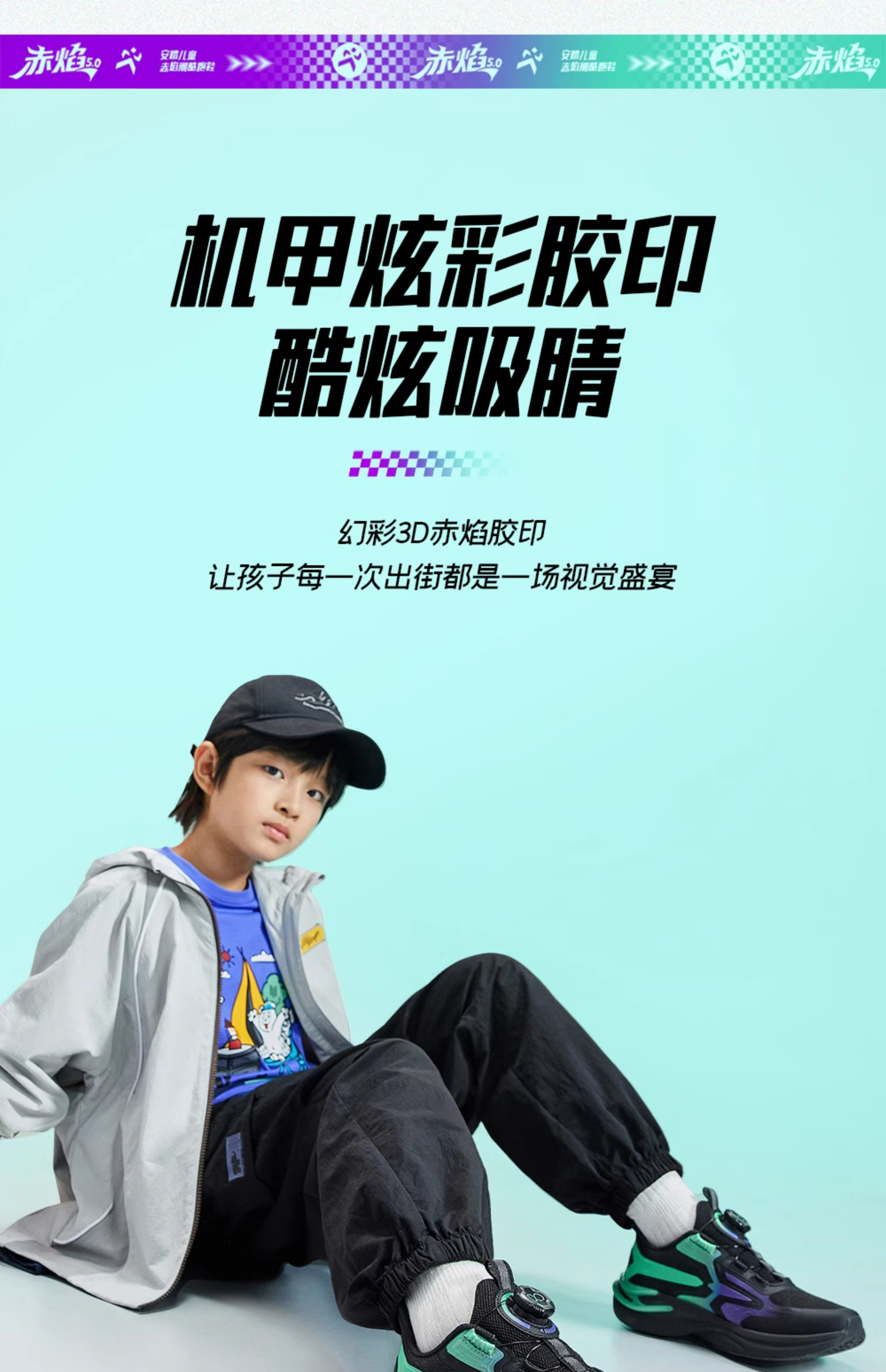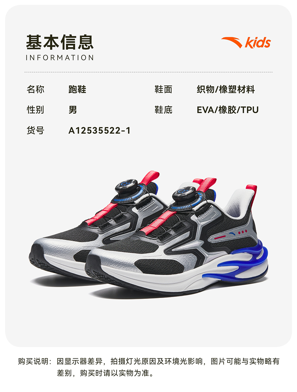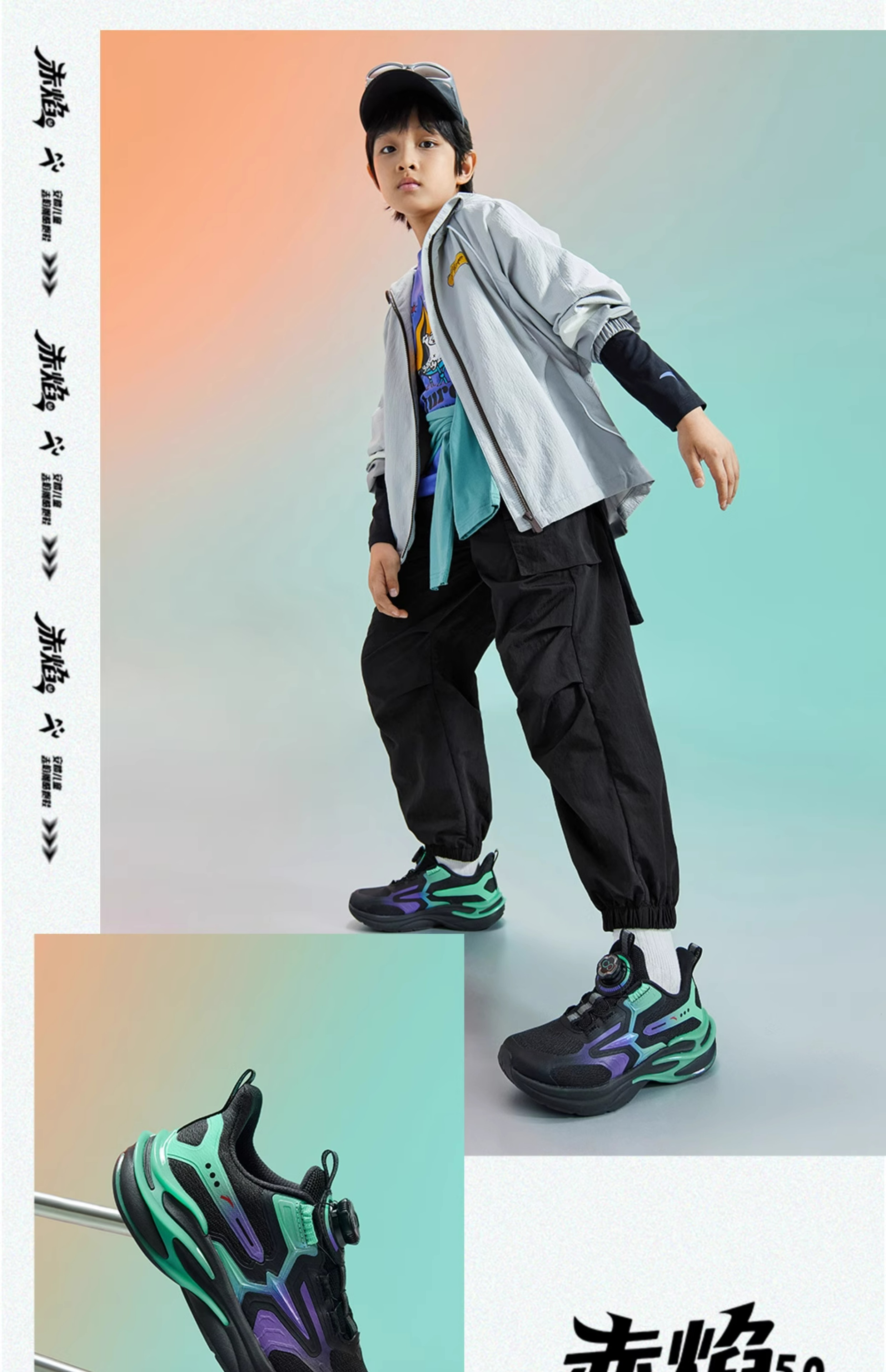 赤焰安踏儿童男大童跑鞋2025秋季新款舒适防滑耐磨中大童旋钮童鞋A12535522