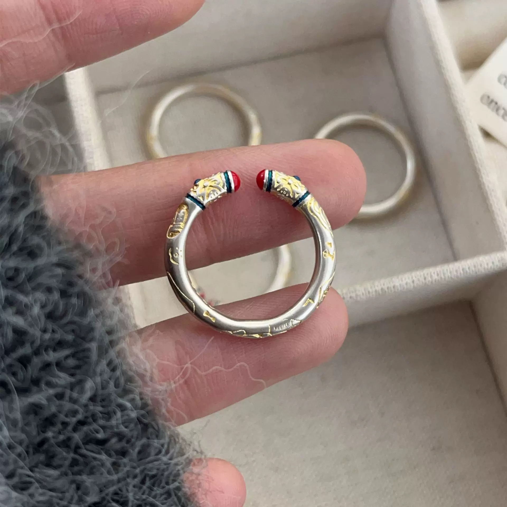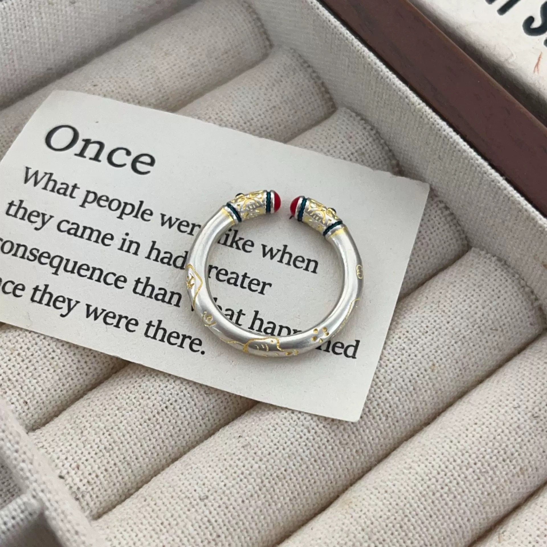 【品名】敦煌瑞锦·卷草纹铜钱戒指