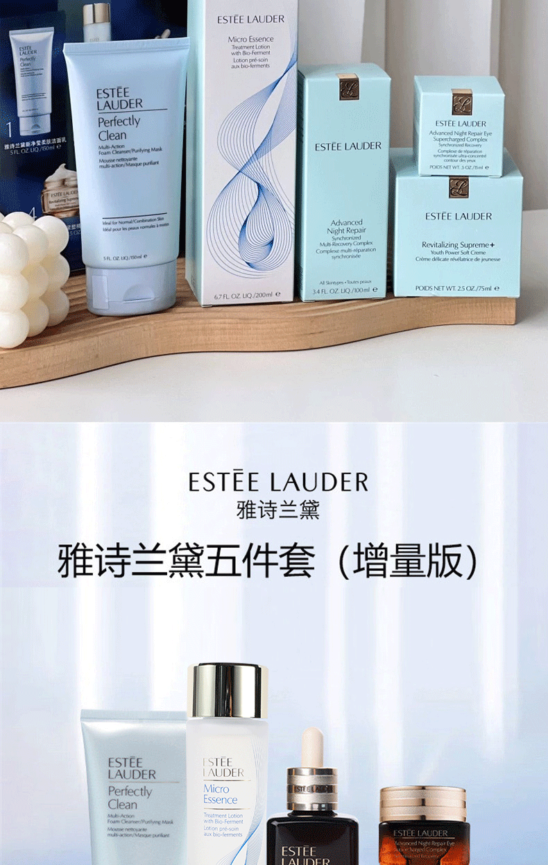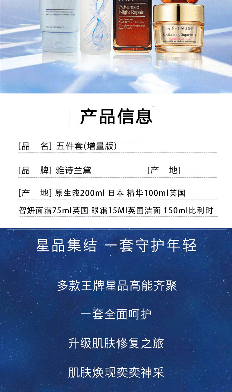 【保税仓直发】雅诗兰黛五件套增量版(原生液200ml+精华100ml+智妍面霜75ml+眼霜15Ml+洁面150ml)