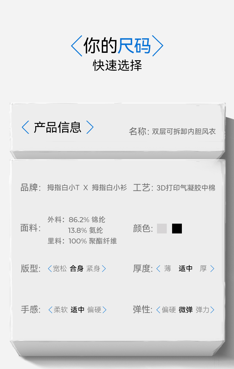 拇指白小衫双层可拆卸内胆风衣探索仿生系列