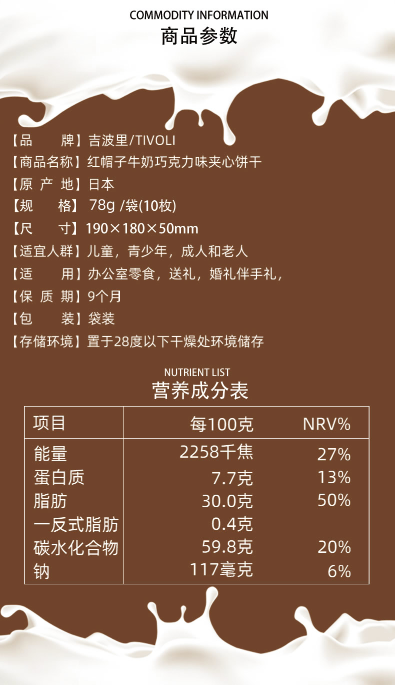 红帽子 牛奶巧克力味 夹心饼干 78g/袋