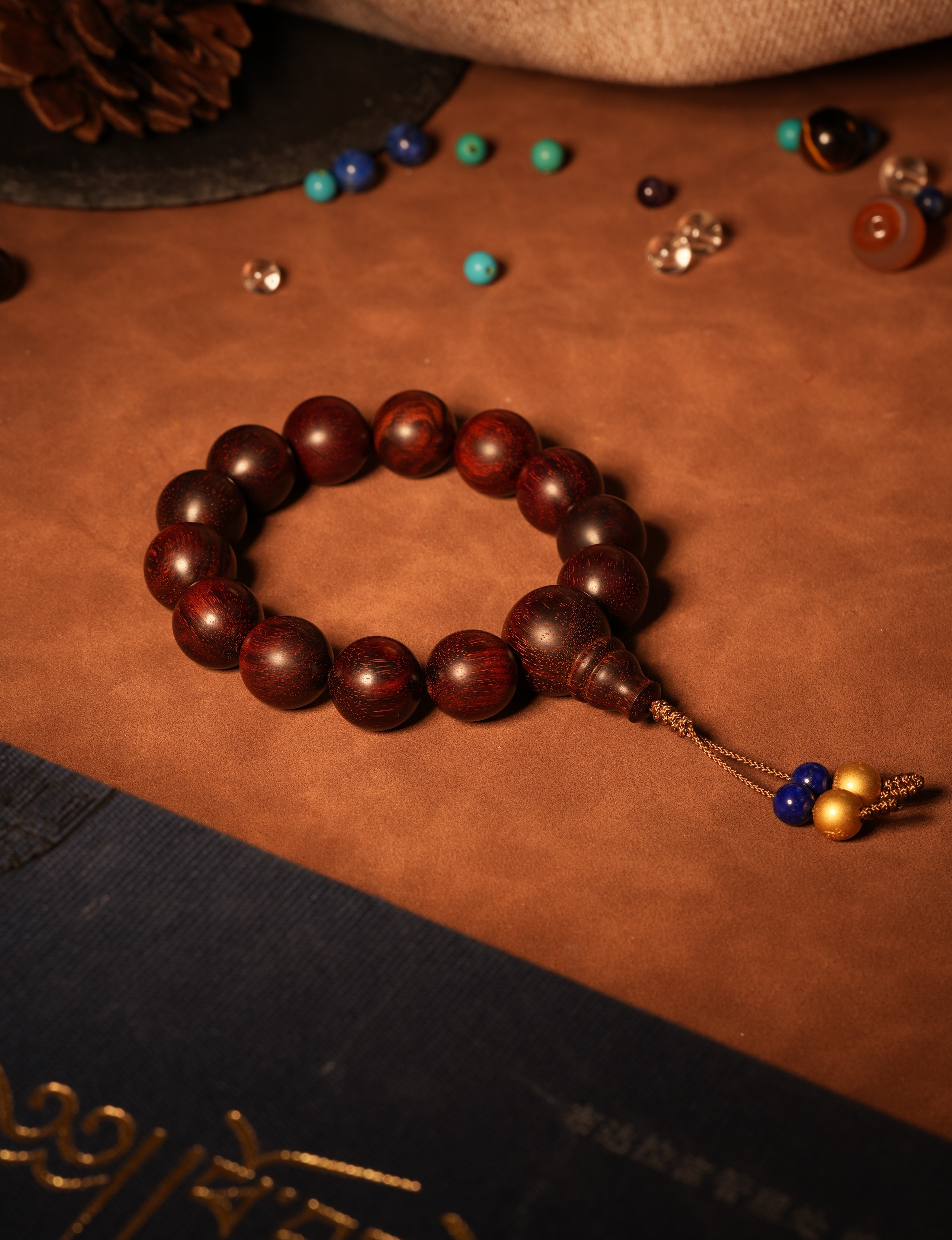 材质:紫檀、青金石、布达拉宫银制logo珠