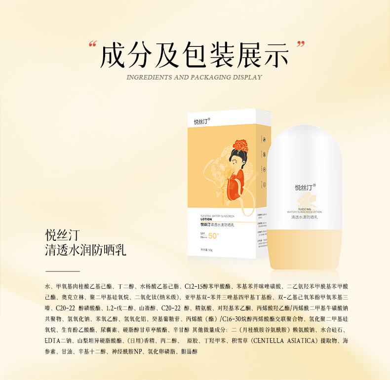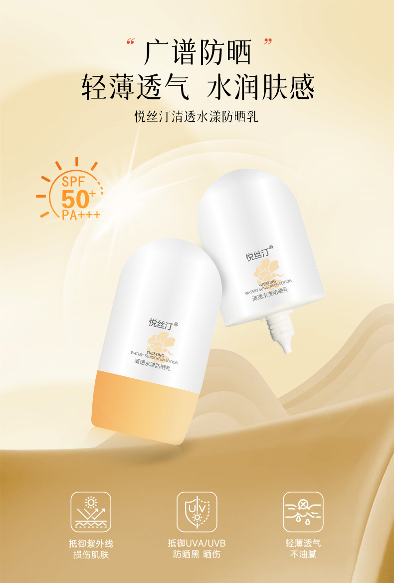 悦丝汀清透水漾防晒乳50g 水润肤感日常通勤旅行适用防晒霜SPF+++
