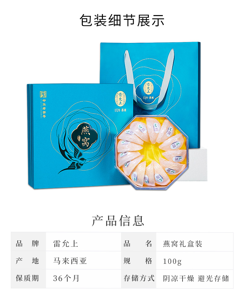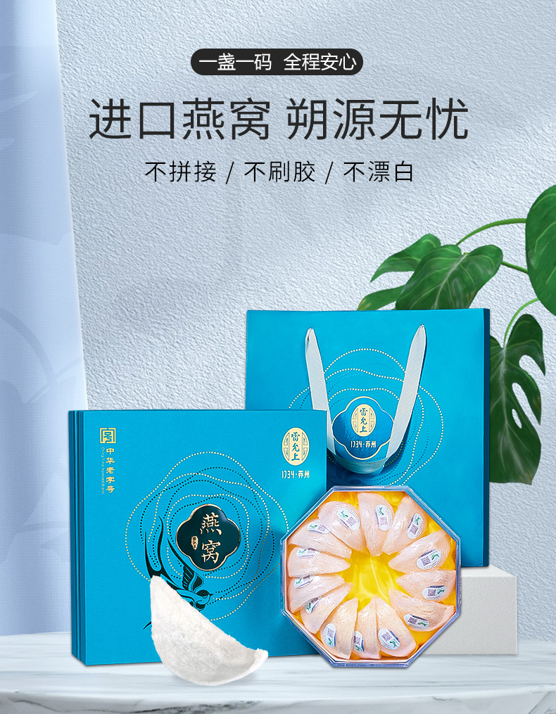 雷允上直营 | 燕窝干盏100g/盒 马来西亚进口干燕窝 金丝燕孕妇补品孕期营养品溯源燕盏礼盒