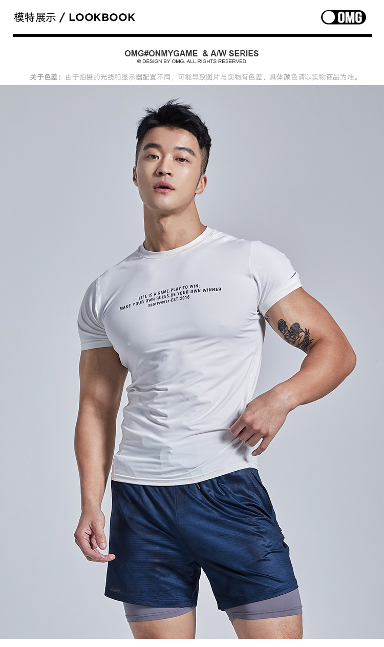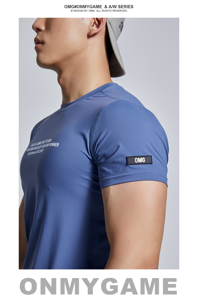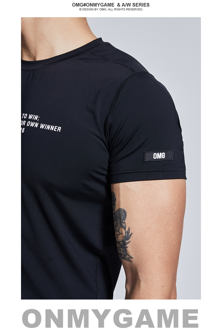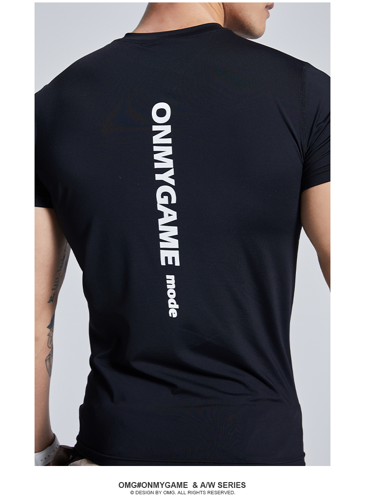 OMG潮牌 锦纶高弹力紧身健身衣服男士速干跑步训练短袖运动T恤J-EMJSY1583