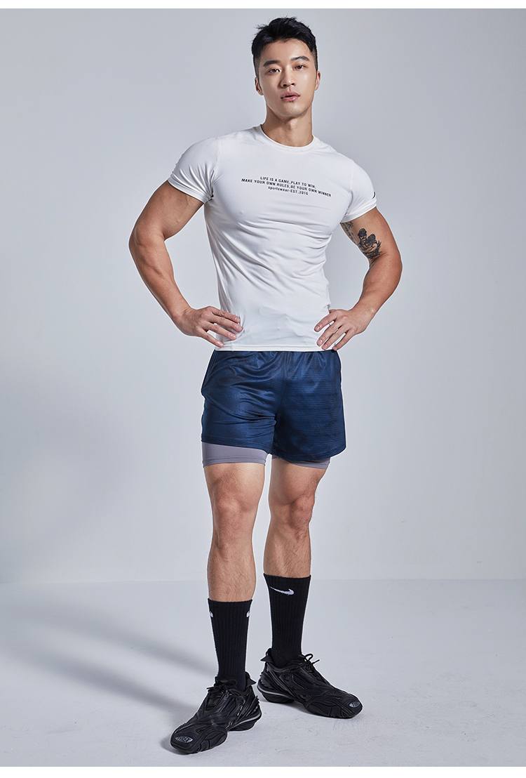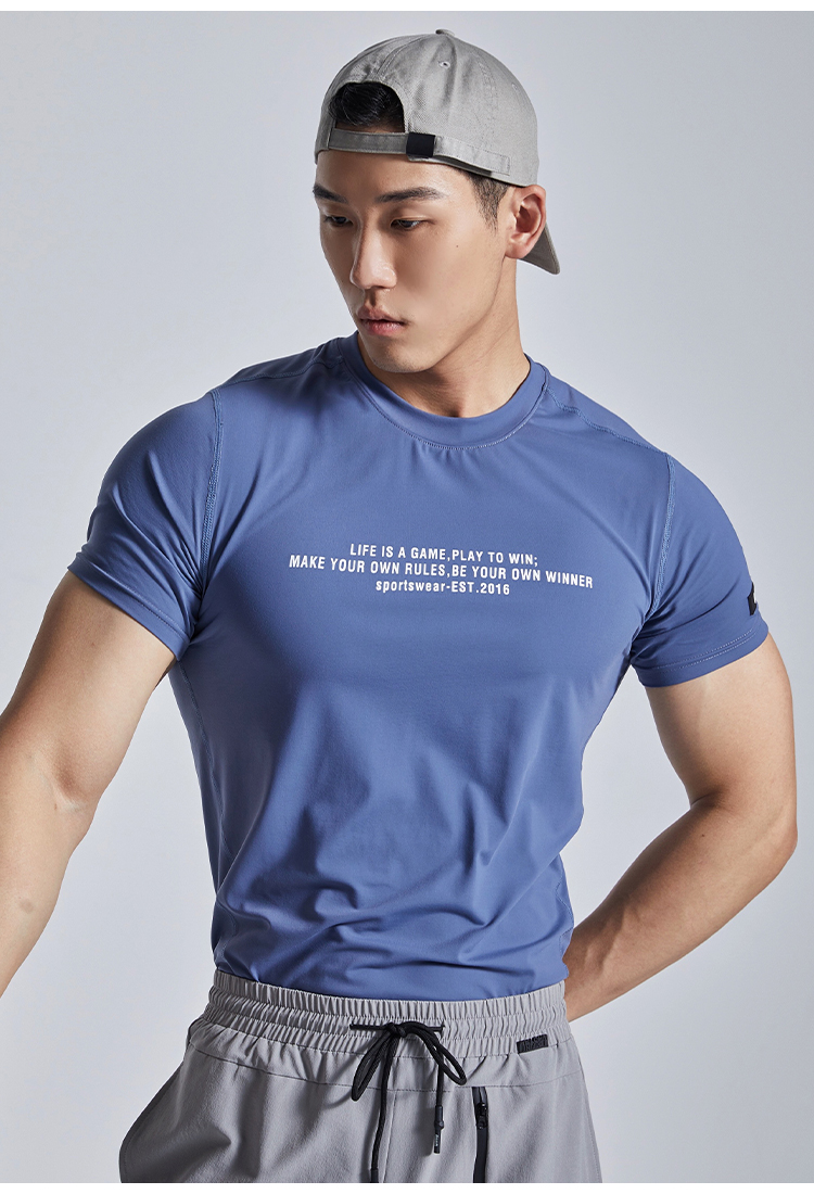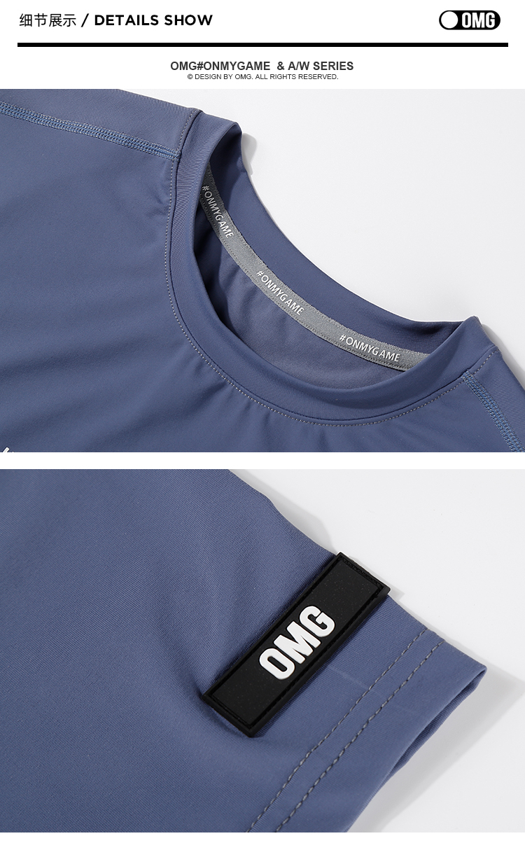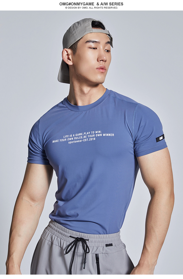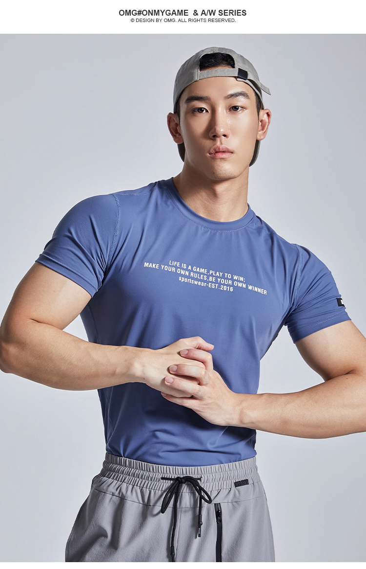 OMG潮牌 锦纶高弹力紧身健身衣服男士速干跑步训练短袖运动T恤J-EMJSY1583