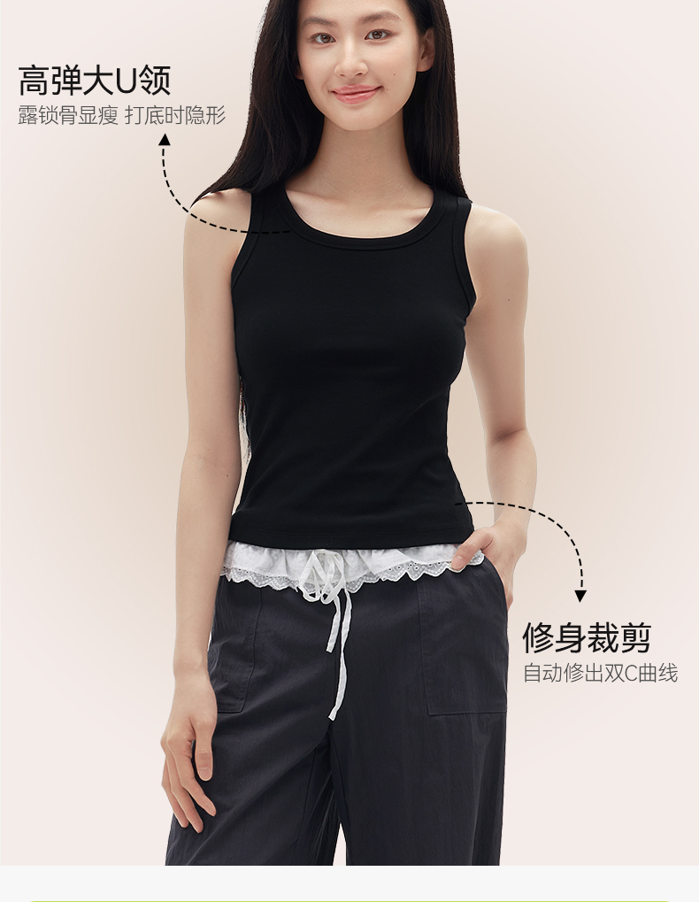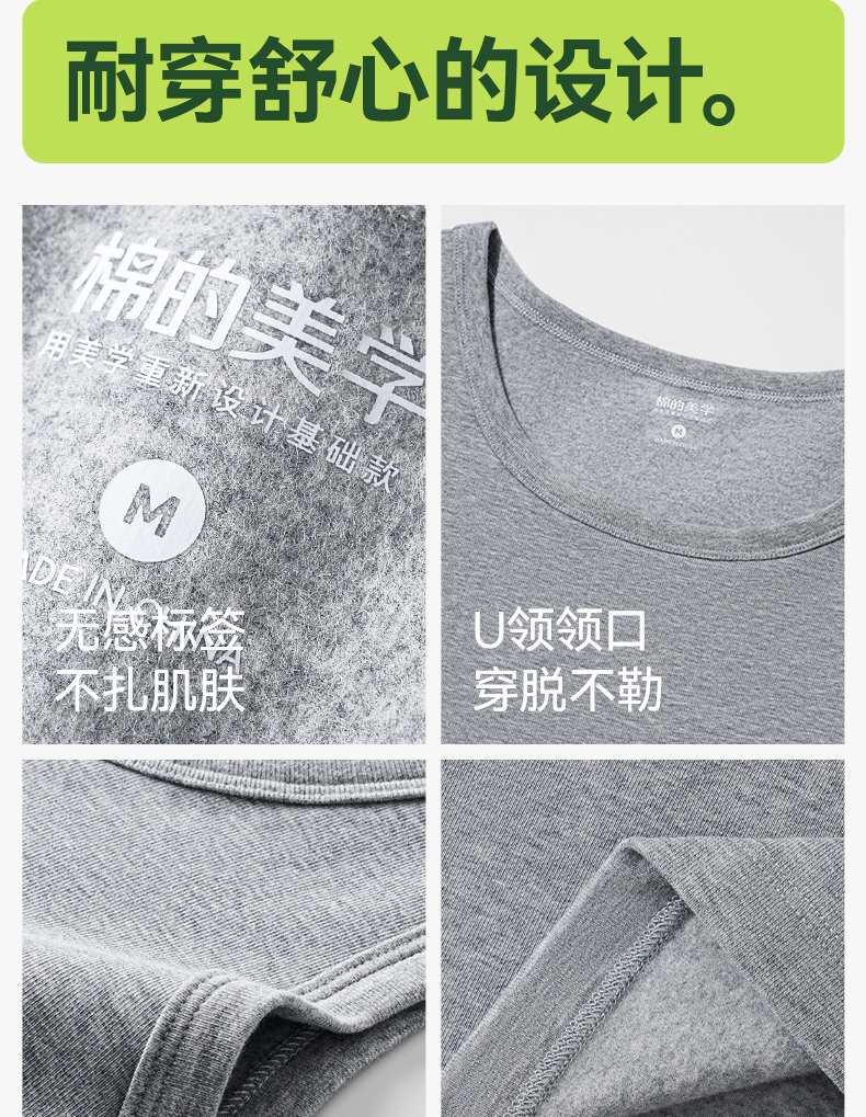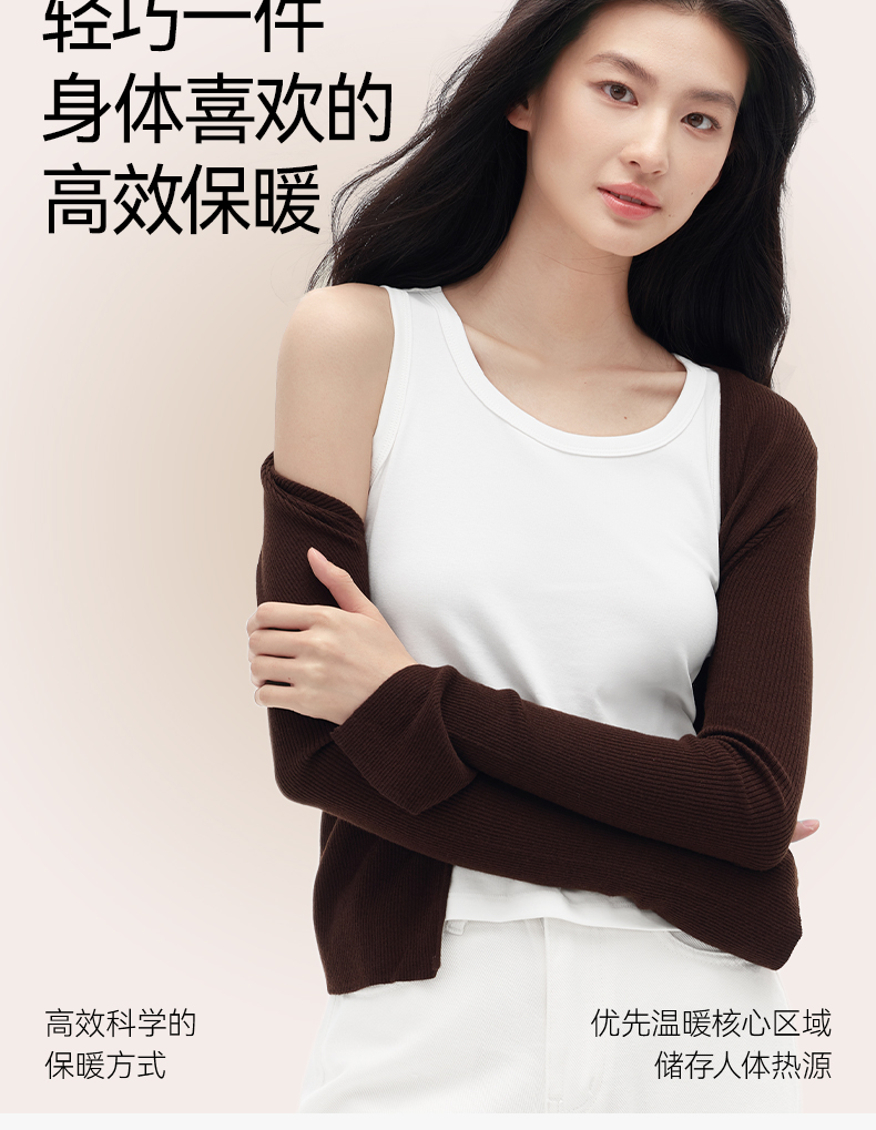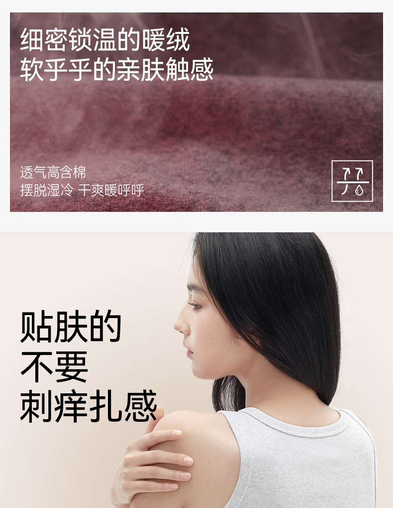 「棉的美学」修身绒锁温暖背心T恤女冬季新款柔软弹力加绒打底衫