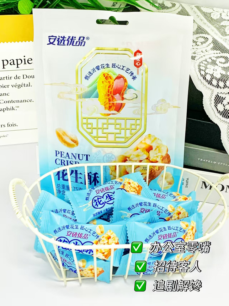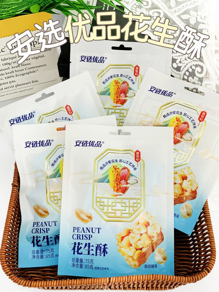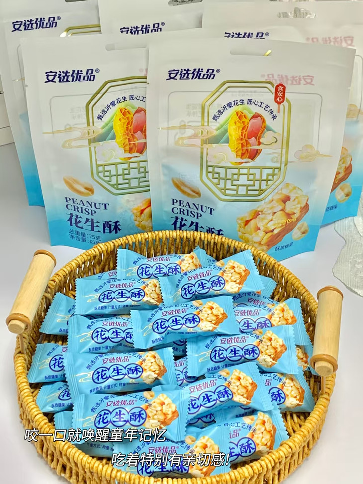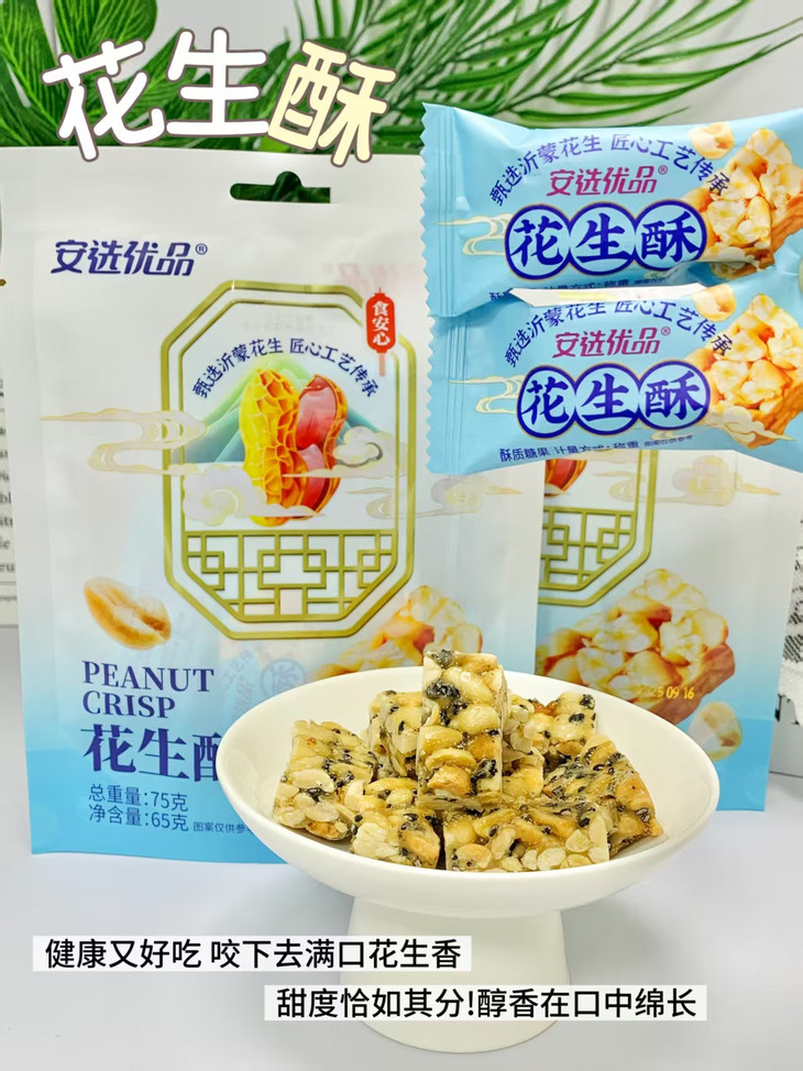 😋19.9💰拿走5袋【安选优品花生酥】花生多到满口香,香浓酥脆✨老少皆宜不粘牙🦷经典儿时味道,秉承传统手作‼️ ✅甄选颗粒饱满的沂蒙花生