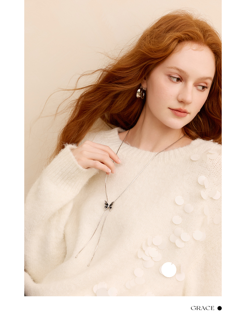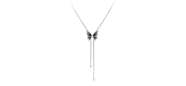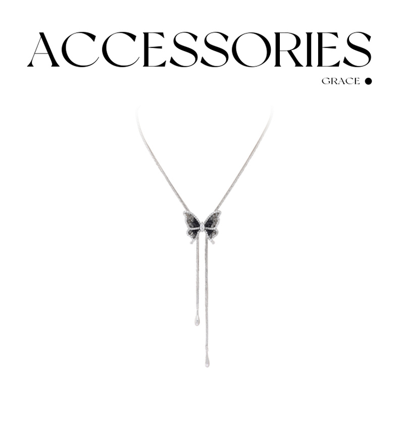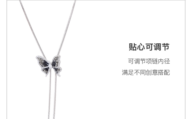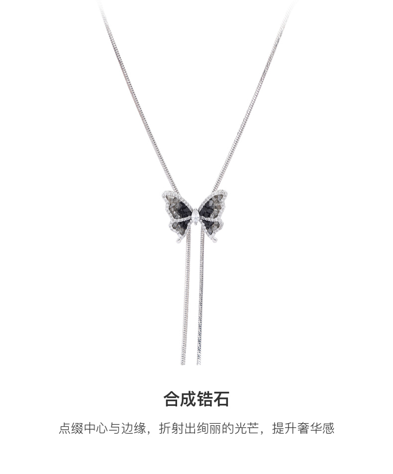 三彩2025新款轻奢锆石仿水晶蝴蝶项链可调节渐变黑色优雅毛衣链