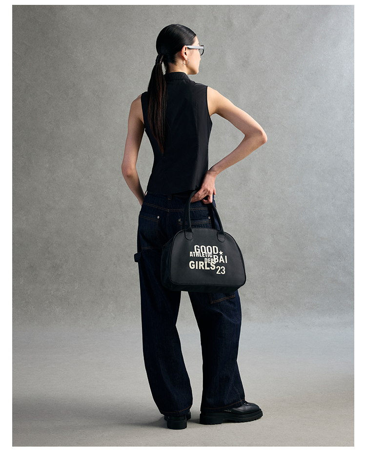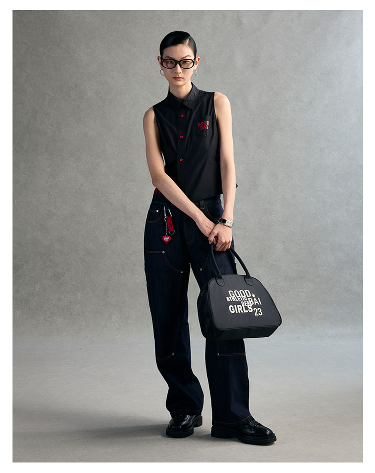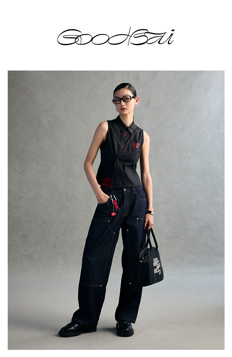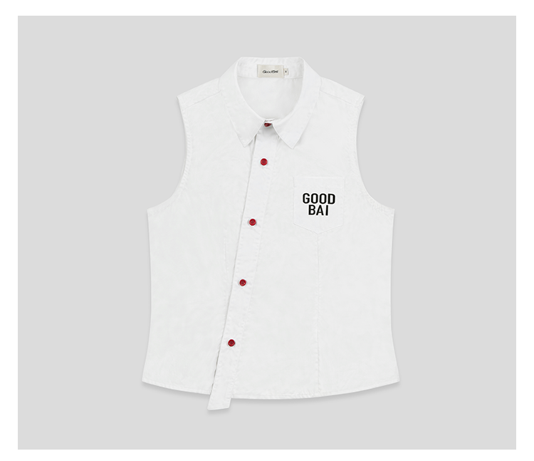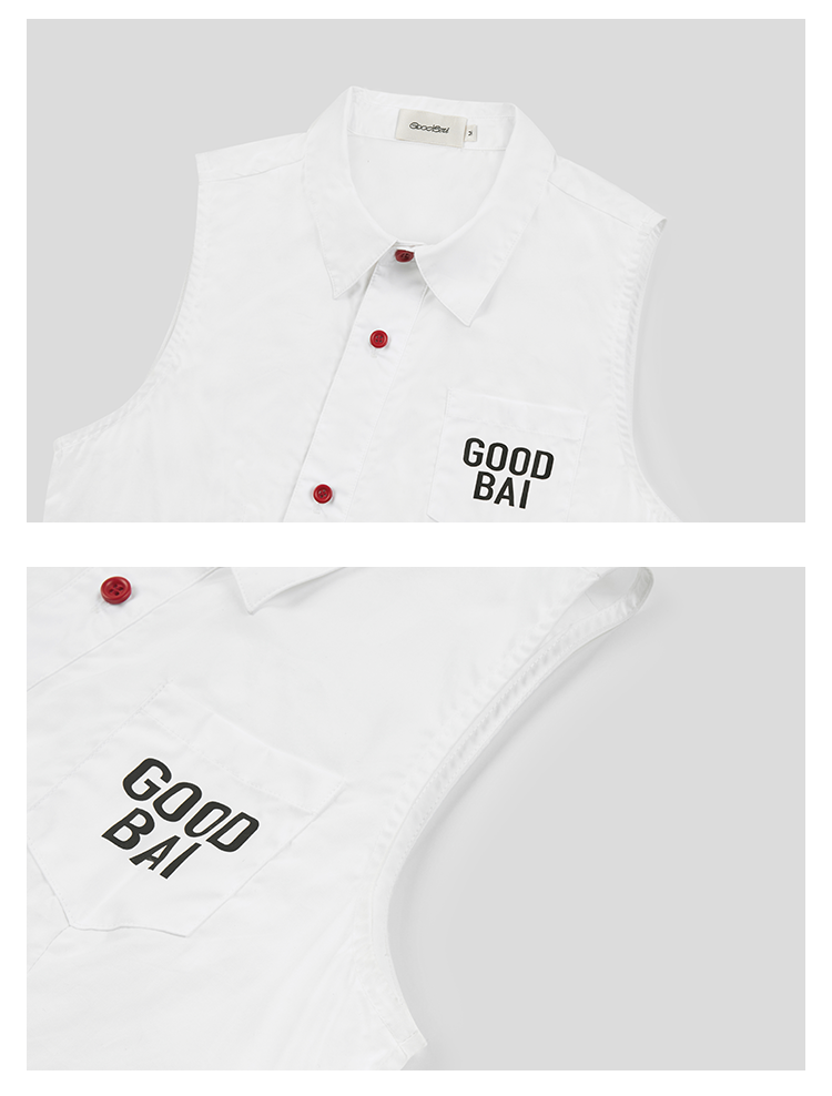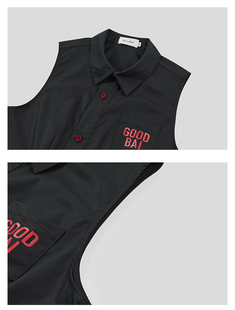 GOODBAI 粗体logo撞色印花翻领斜襟口袋衬衫背心