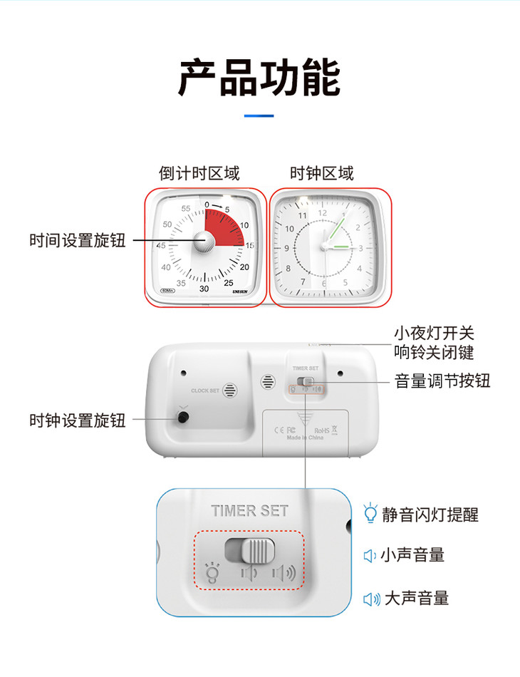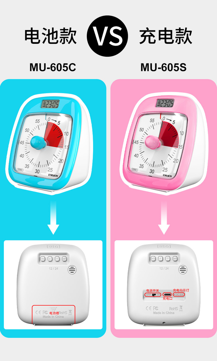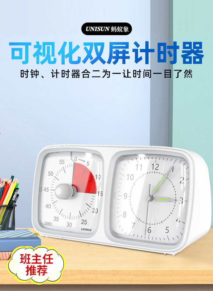 开学季特价!【UNISUN时间管理器】 双盘版+充电版+单盘版3版可选!闹钟、秒表、正计时、倒计时、走时静音、操作方便、响铃调节、闪灯提醒、时间可视等好多功能