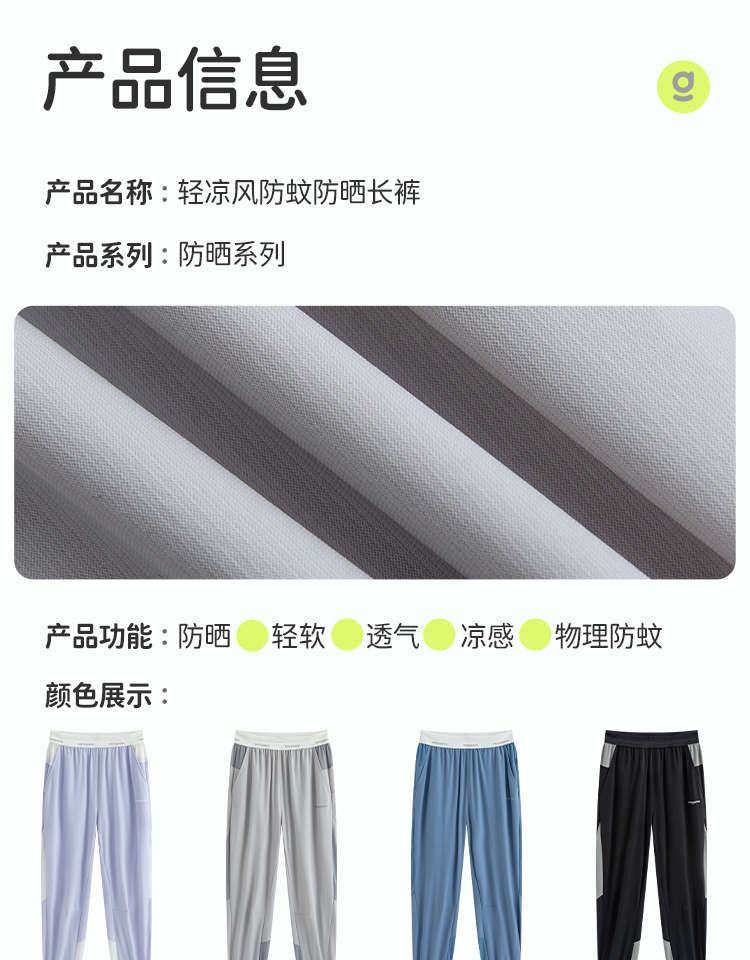 onmygame 轻凉风】男女童裤子儿童凉感防蚊裤透气防晒长裤夏季