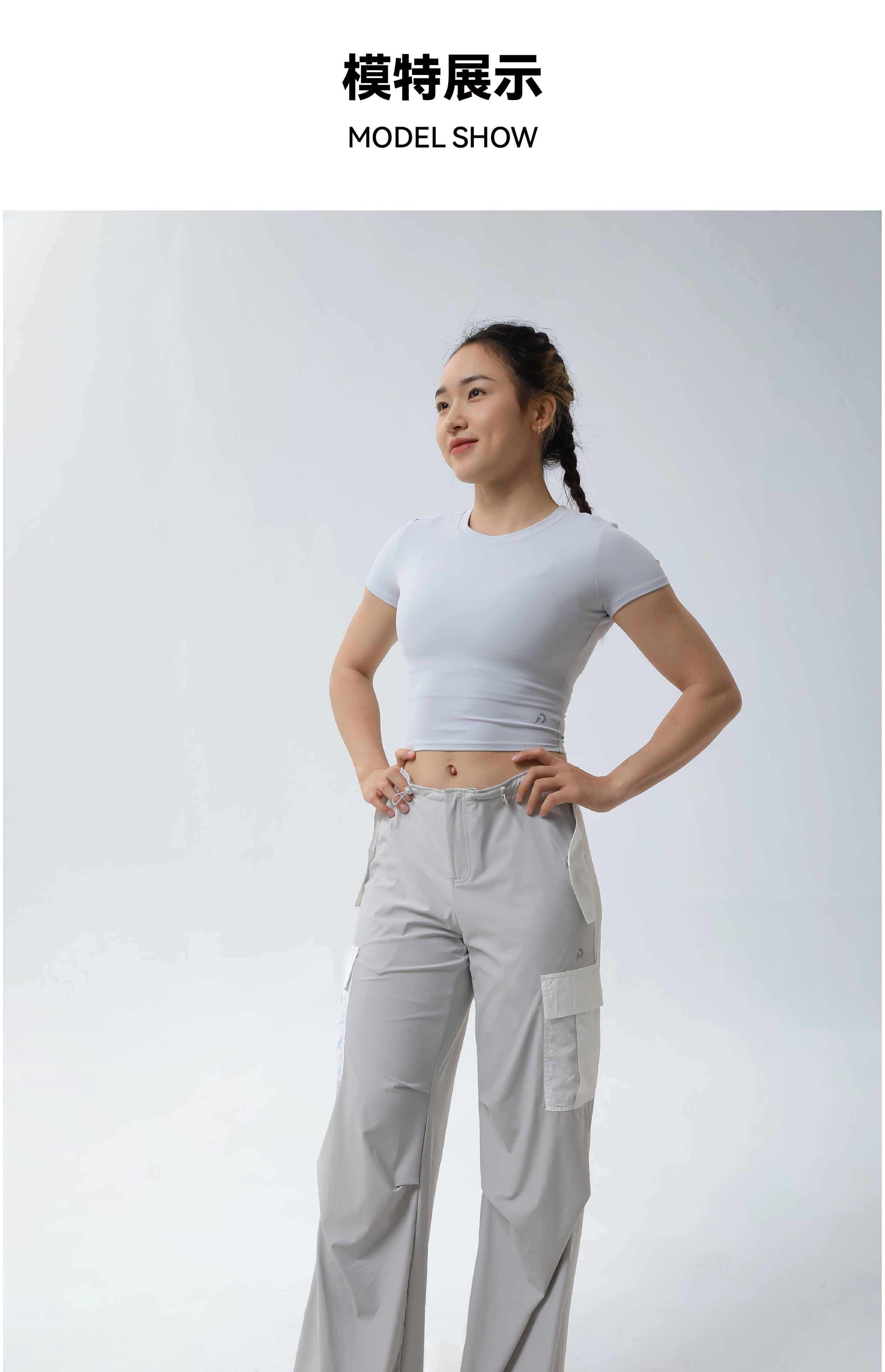 Basic系列女士纯色圆领修身上衣正肩T恤