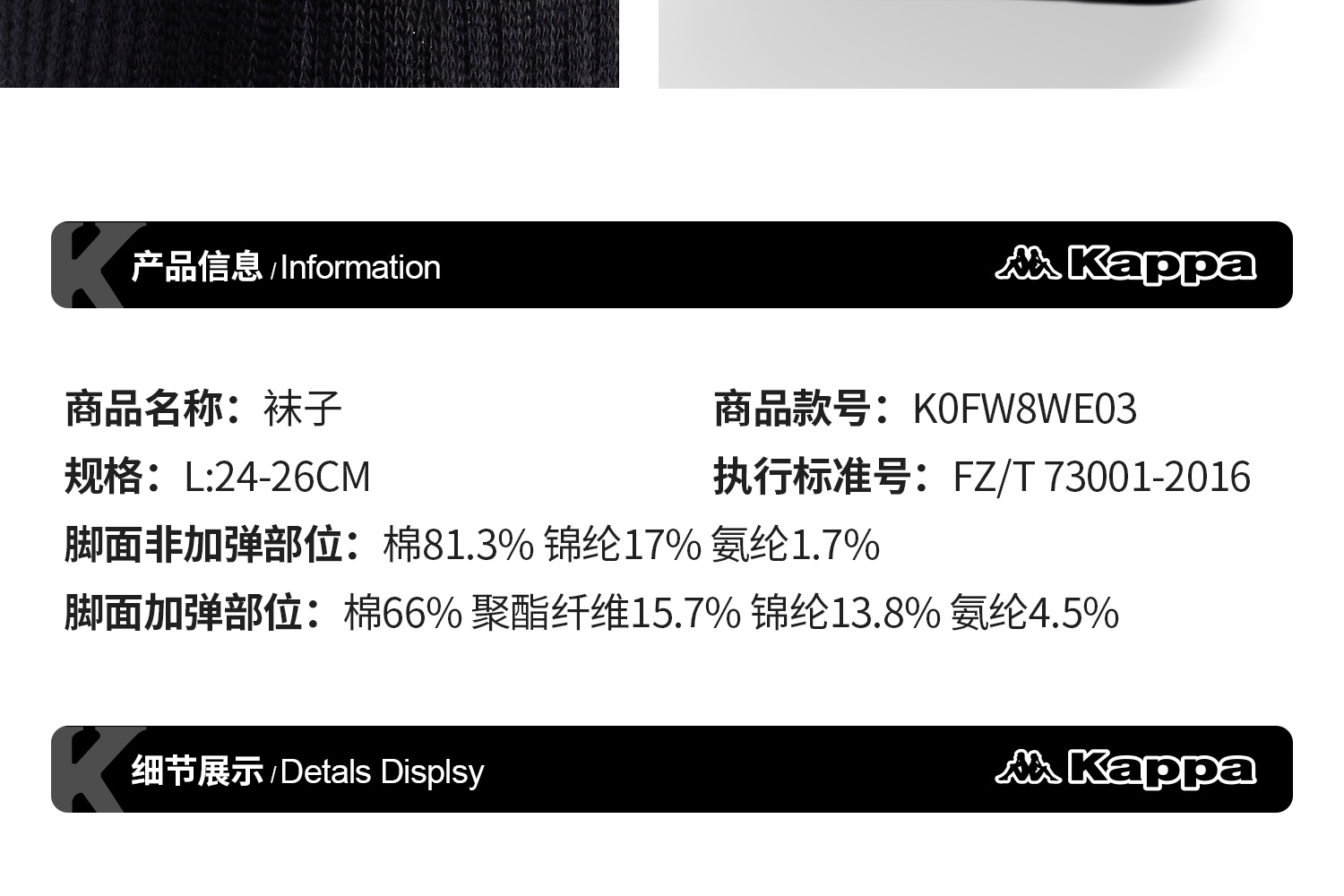 Kappa卡帕背靠背中筒运动跑步袜2024新款情侣透气休闲中腰袜子男K0FW8WE03