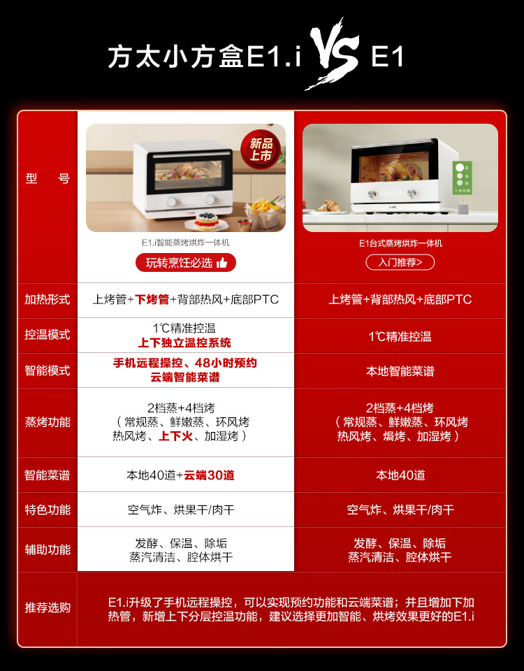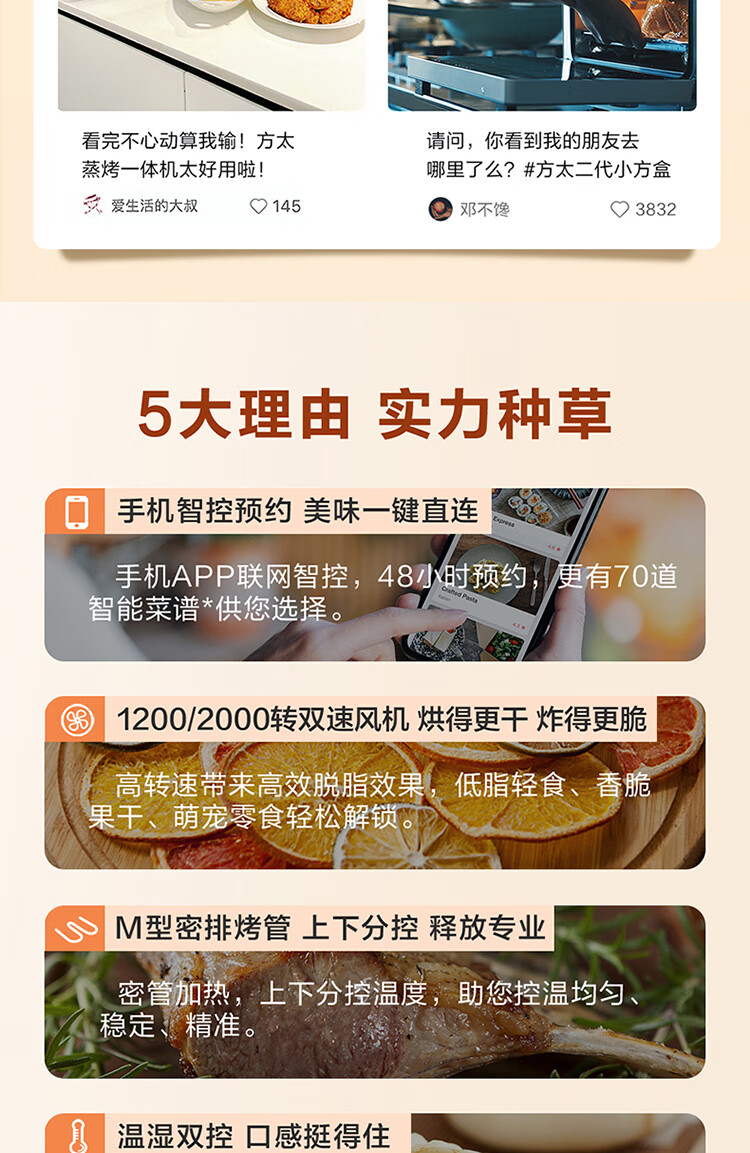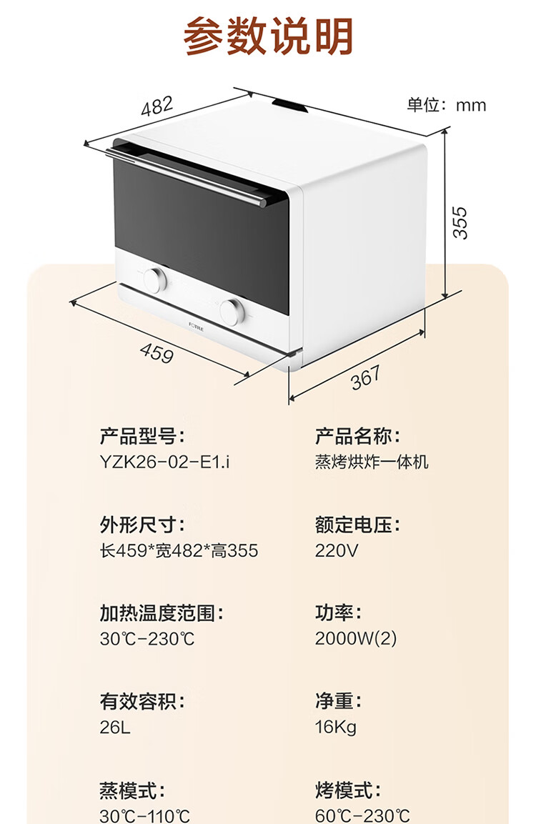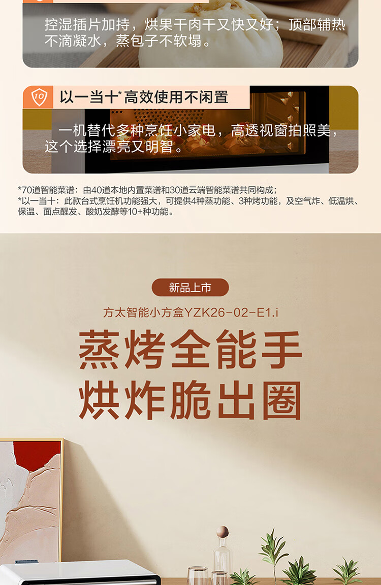方太蒸烤箱一体机台式家用 多功能电蒸烤烘炸4合1小方盒上下独立控温电蒸箱烤箱一体机空气炸锅02-E1.i