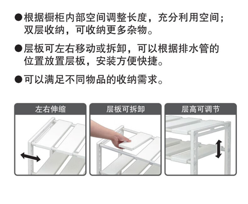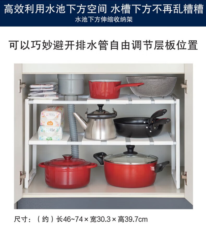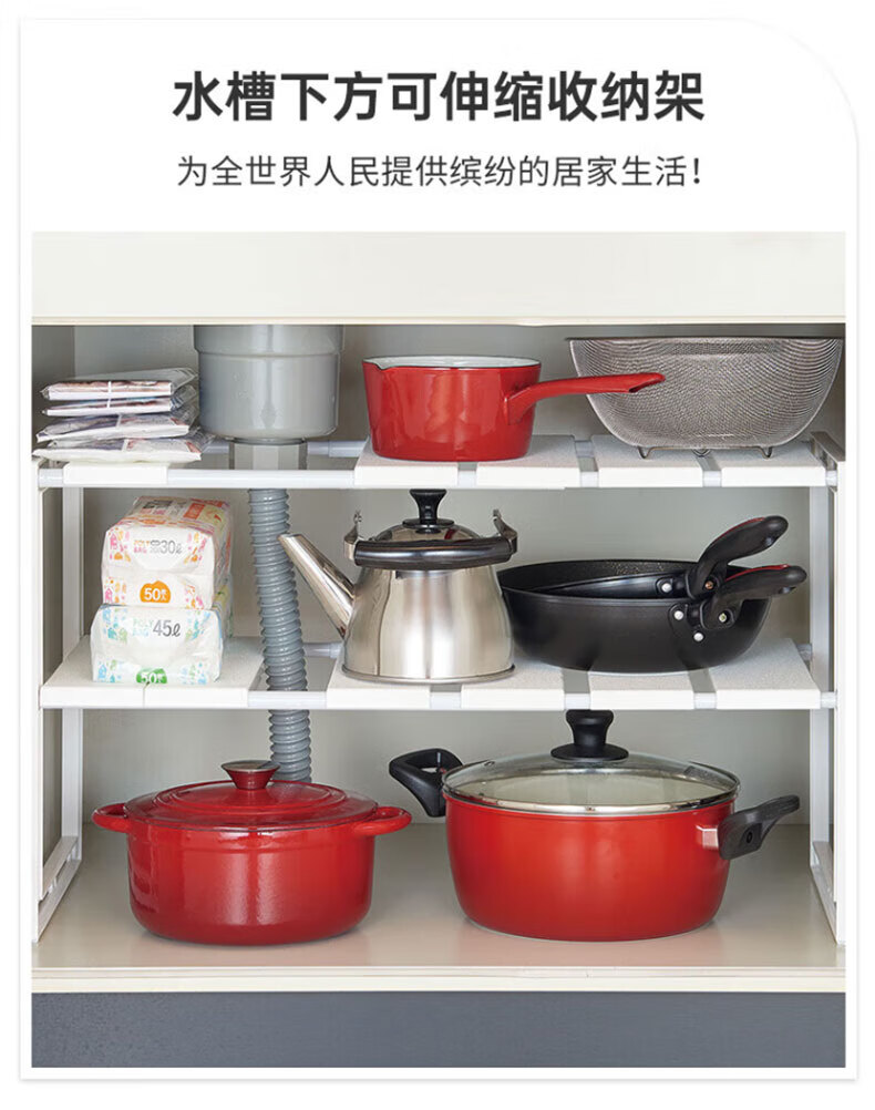家用餐具置物架水槽下方可伸缩收纳架置物收纳架