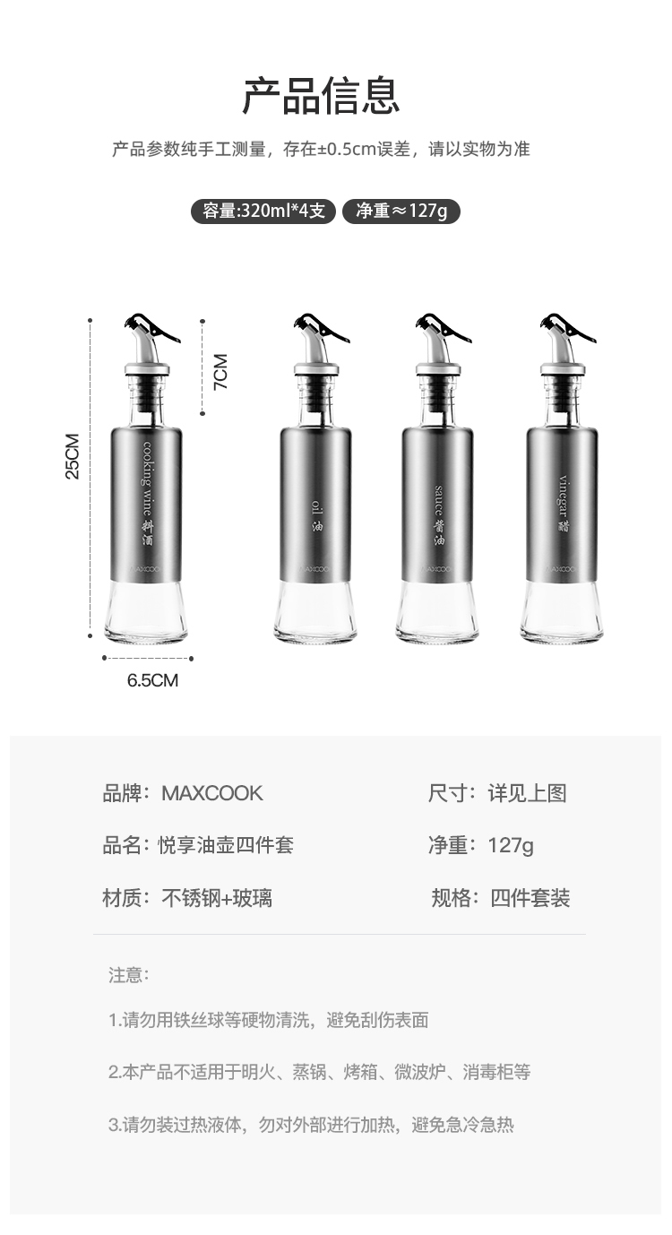 美厨悦享玻璃油瓶套装(320ML*4只装) MCLP-611