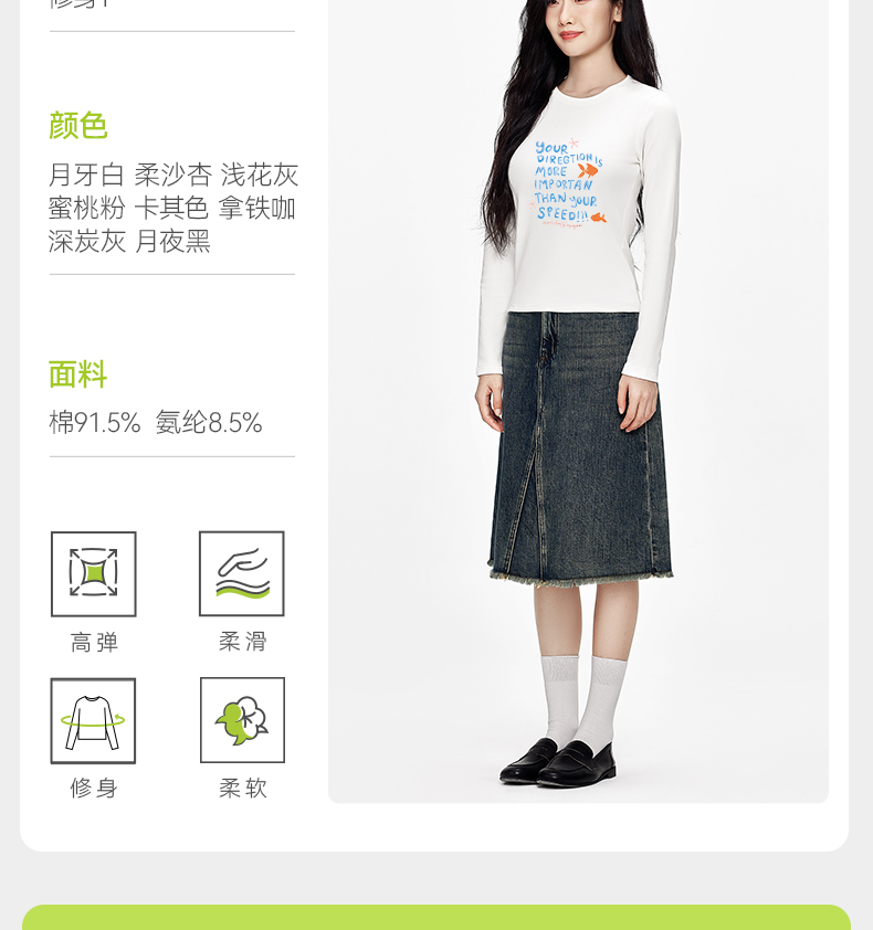 「棉的美学」高弹软糯打底衫女显瘦修身正肩长袖T恤内搭辣妹上衣