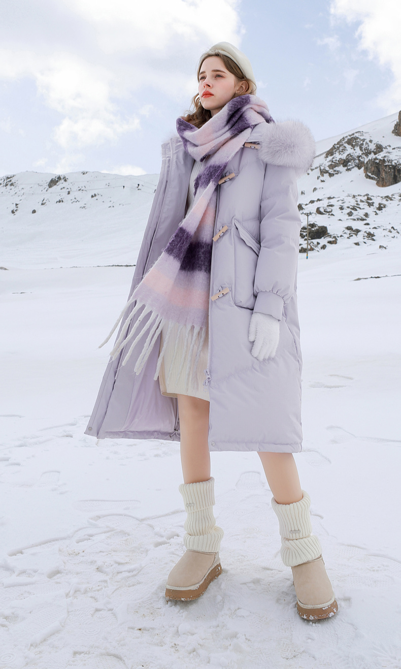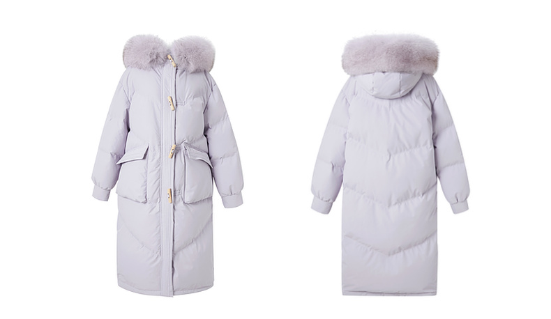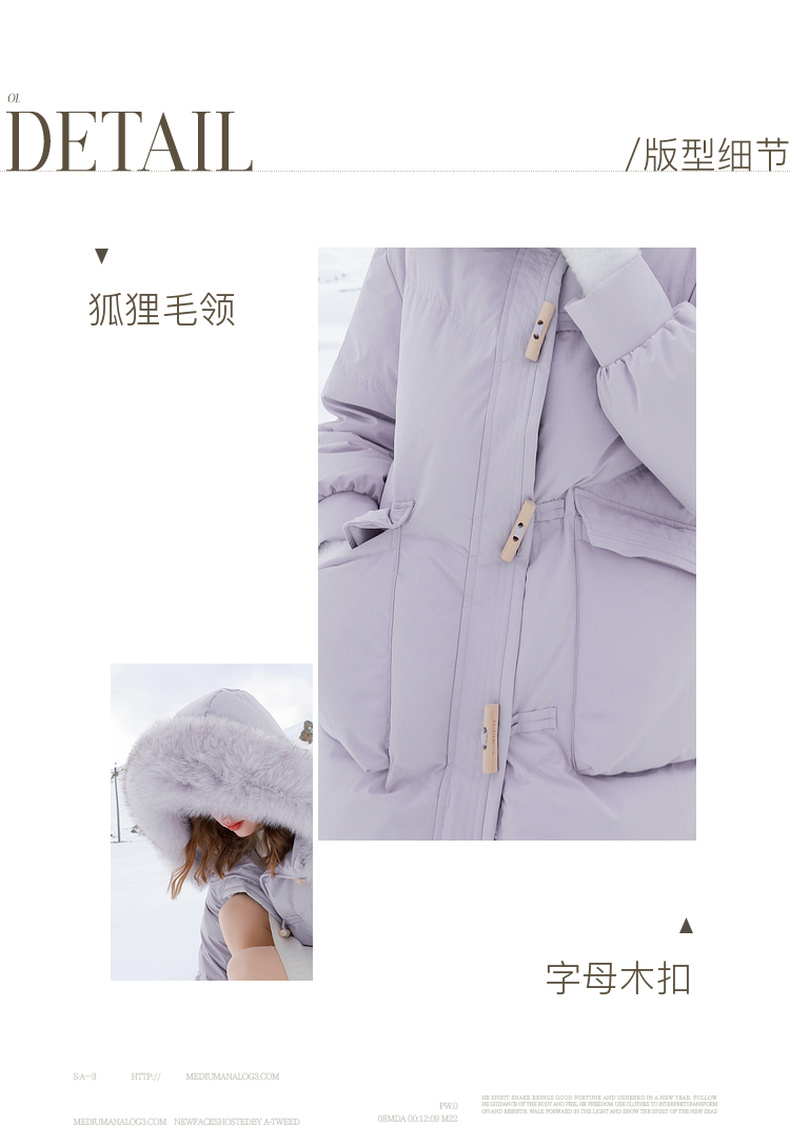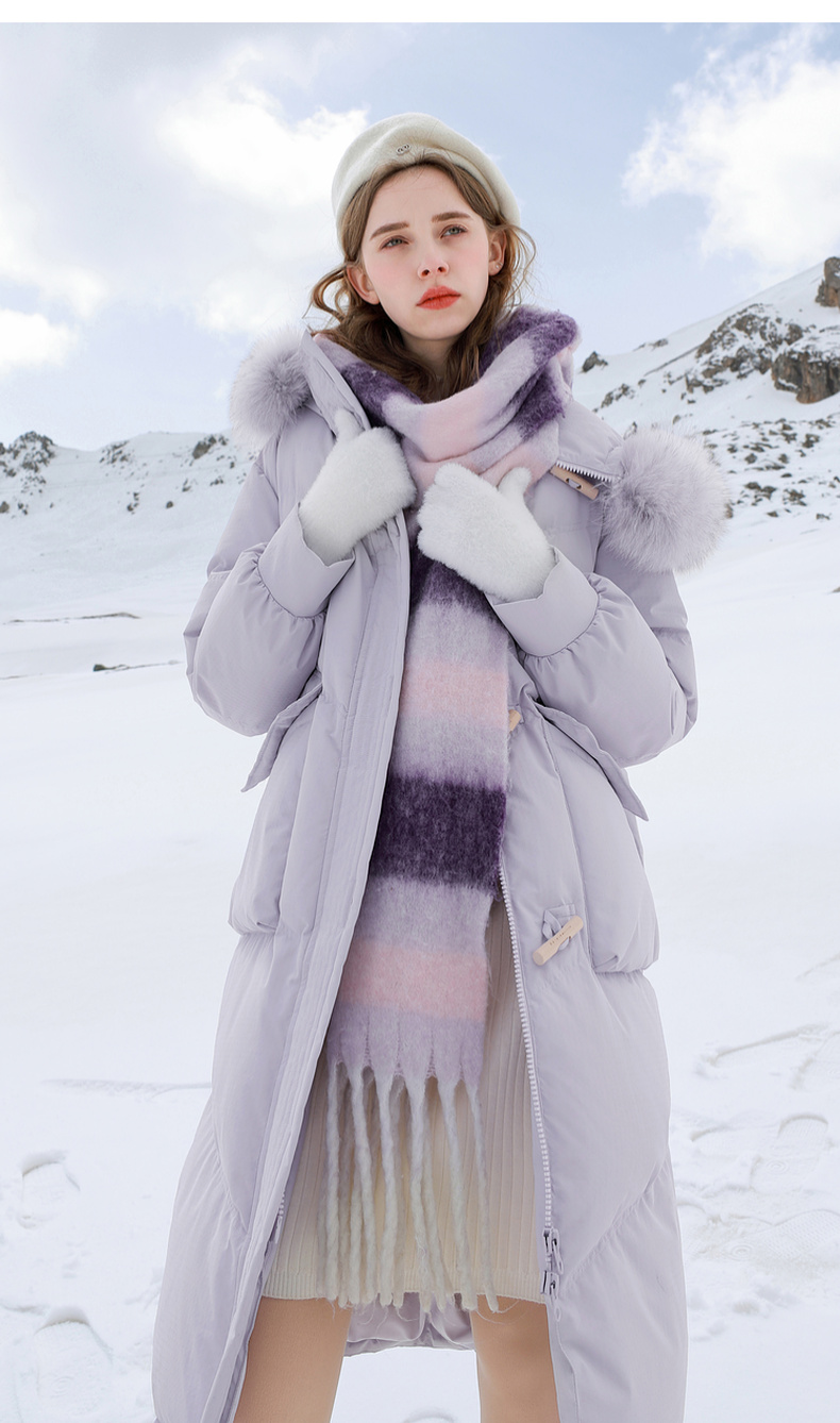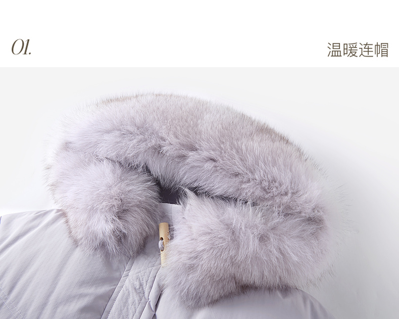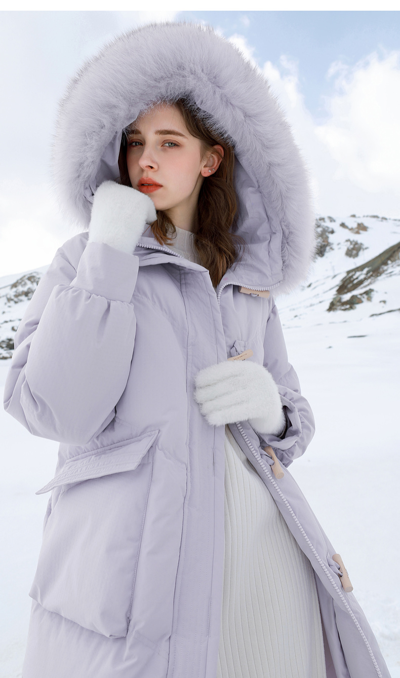 三彩2025冬季新款长款羽绒服狐狸毛领白鸭绒保暖外套宽松休闲M