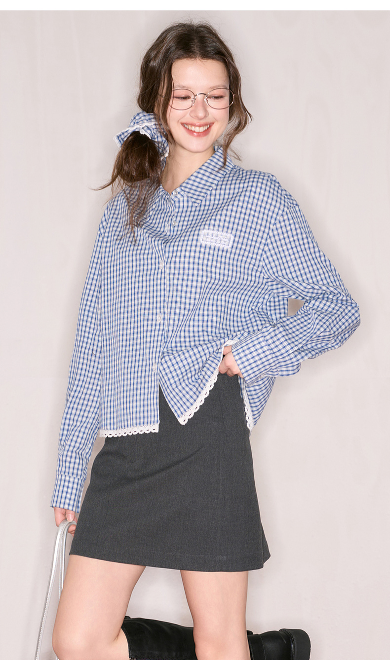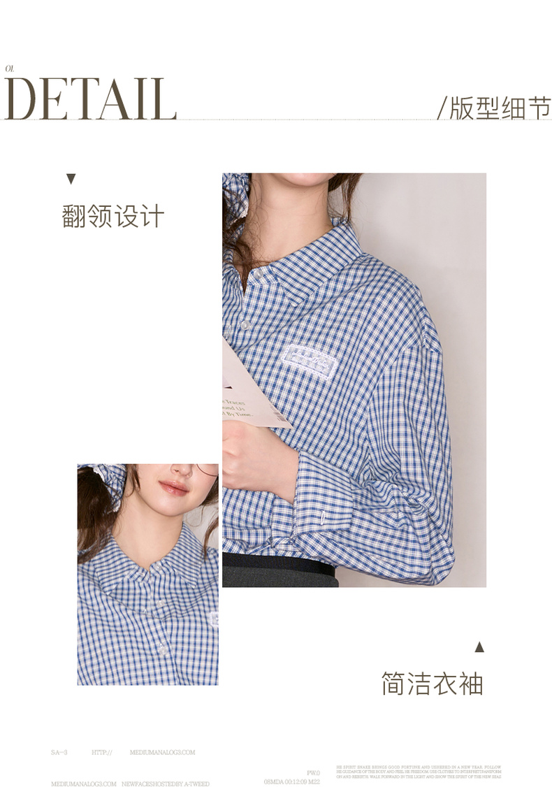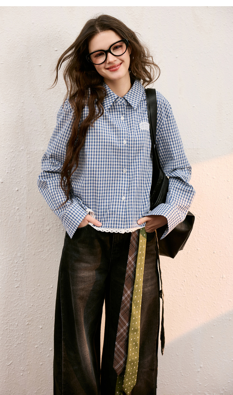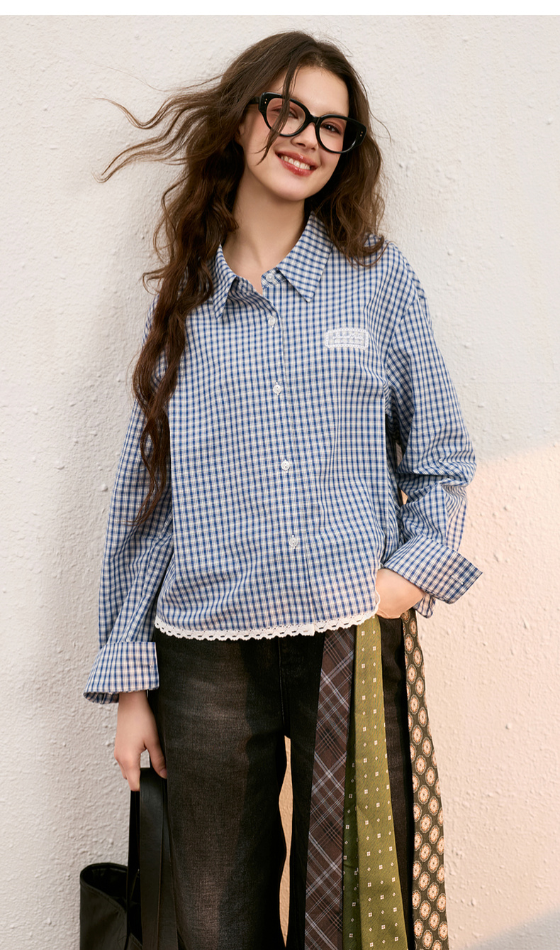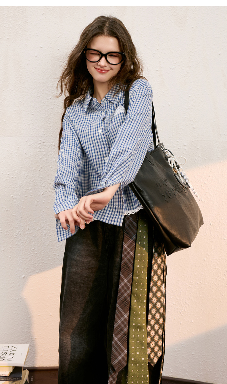 【100棉】三彩独醒2025秋季新款格纹衬衫长袖翻领宽松衬衣休闲F