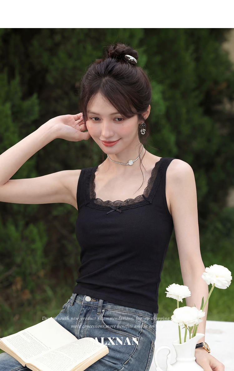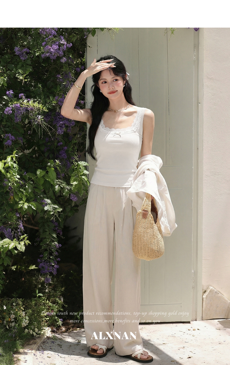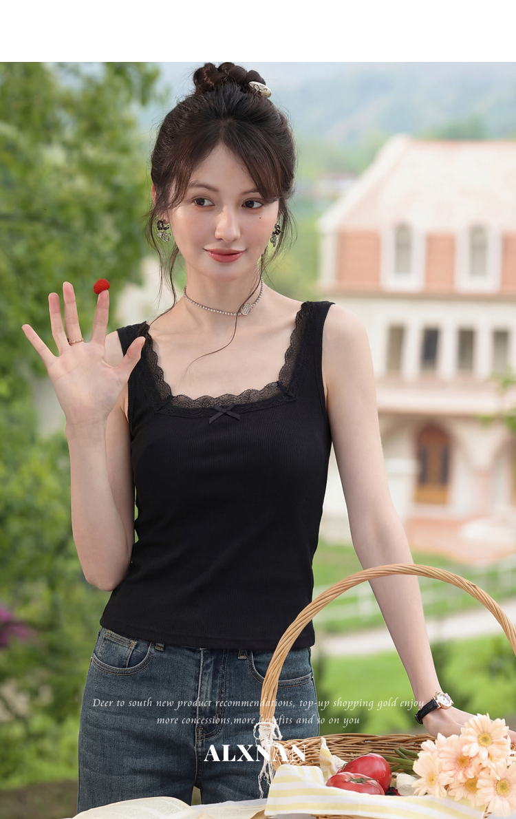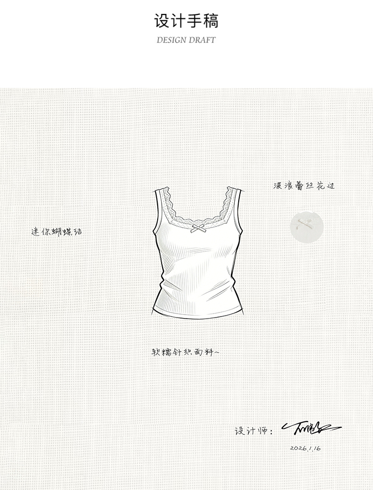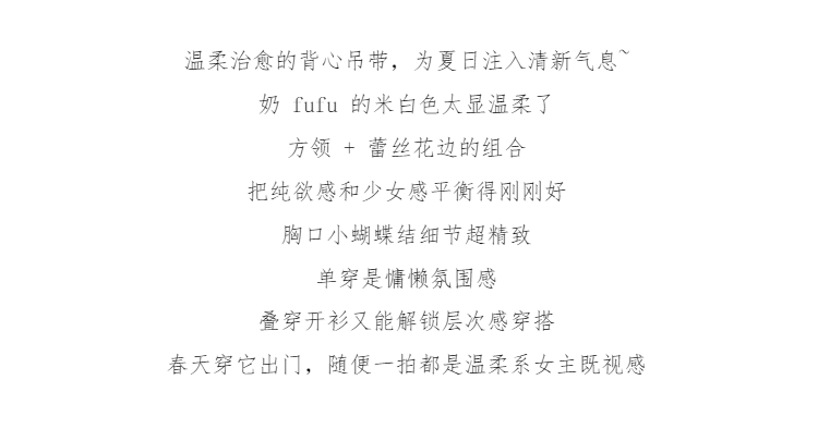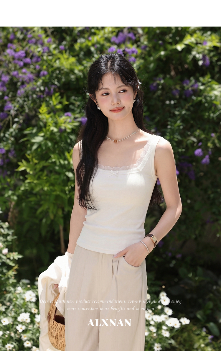 鹿向南「白茶轻柔」米白色背心吊带女夏新款法式蕾丝无袖内搭上衣