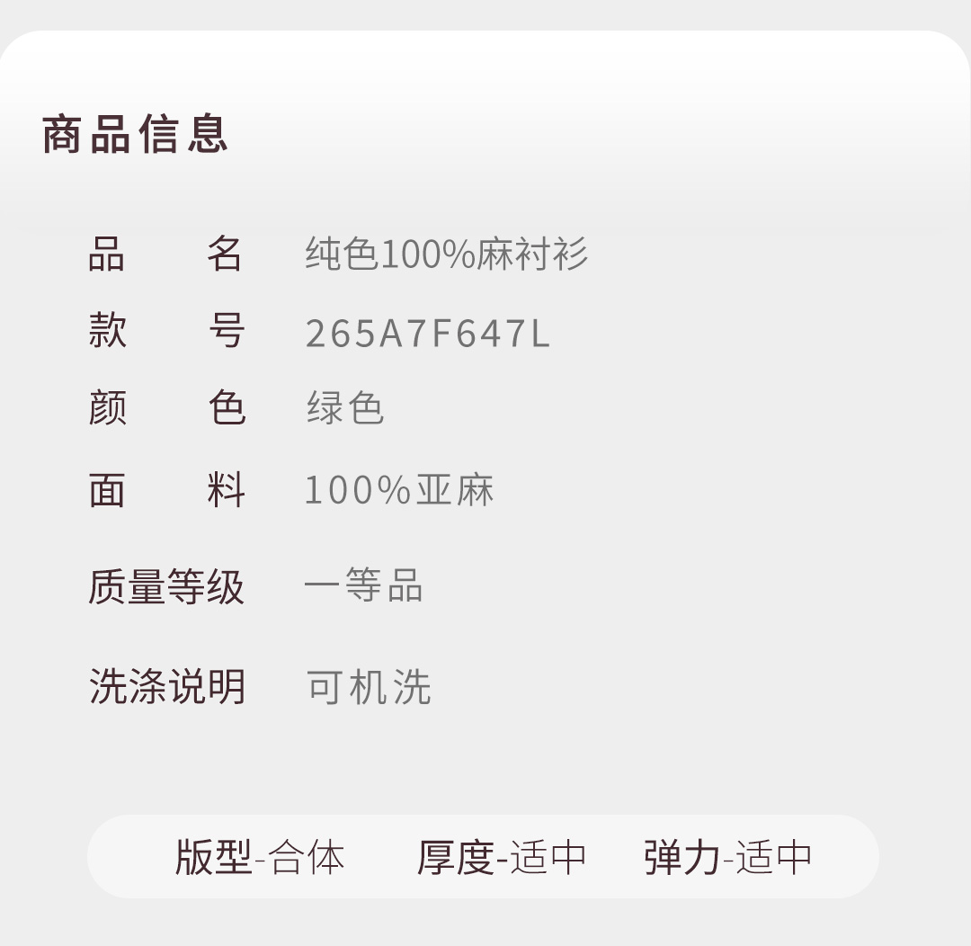 【100%亚麻】经典10长袖衬衫265A7F647L[门店专款]