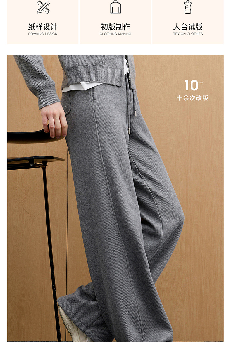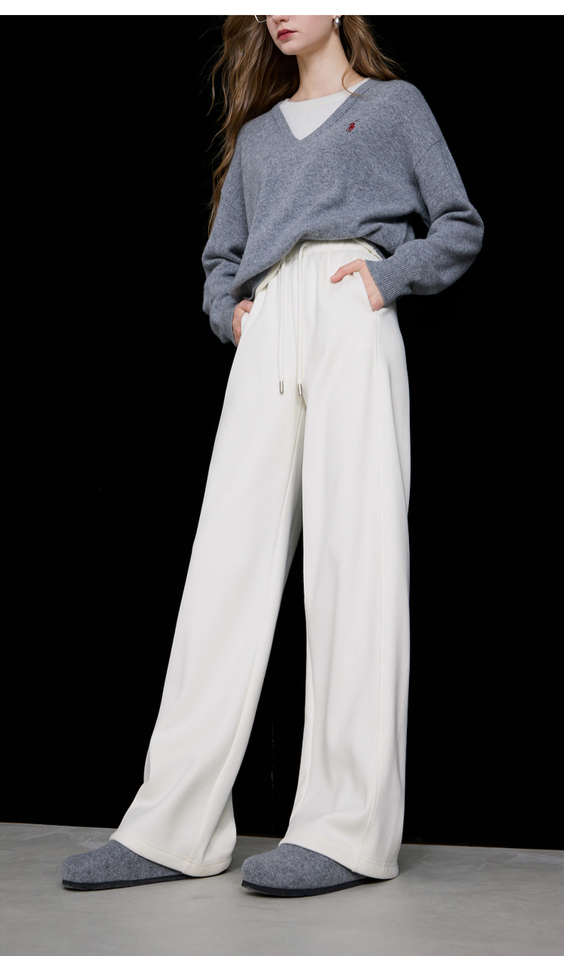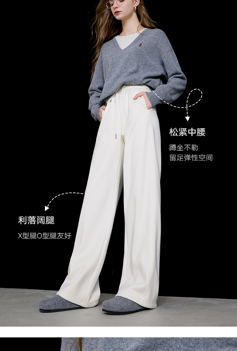 【宋轶同款】[加绒]三彩2025冬季新款慵懒休闲长裤松紧腰直筒裤保暖显瘦M
