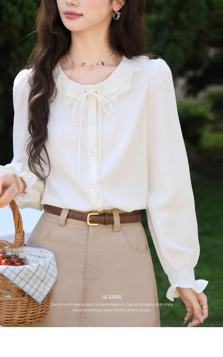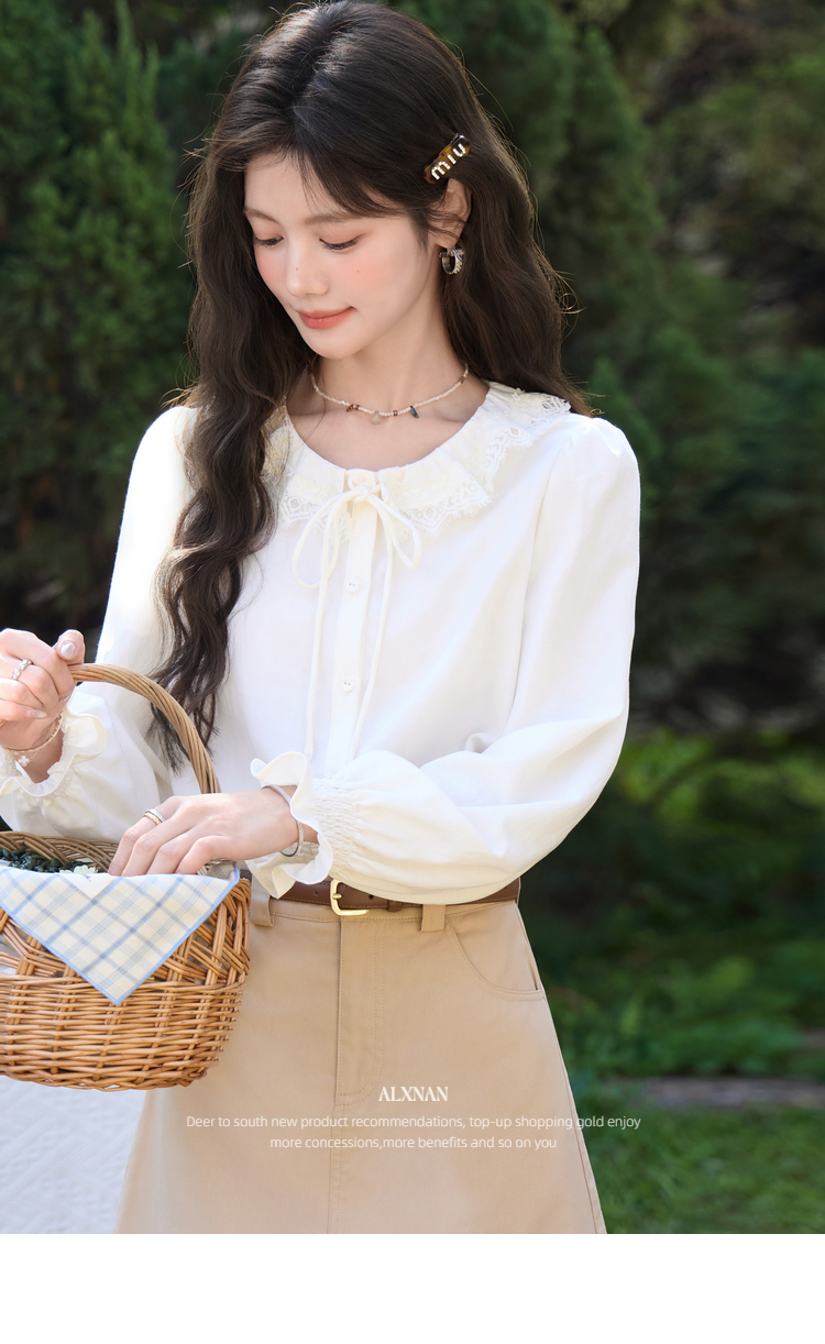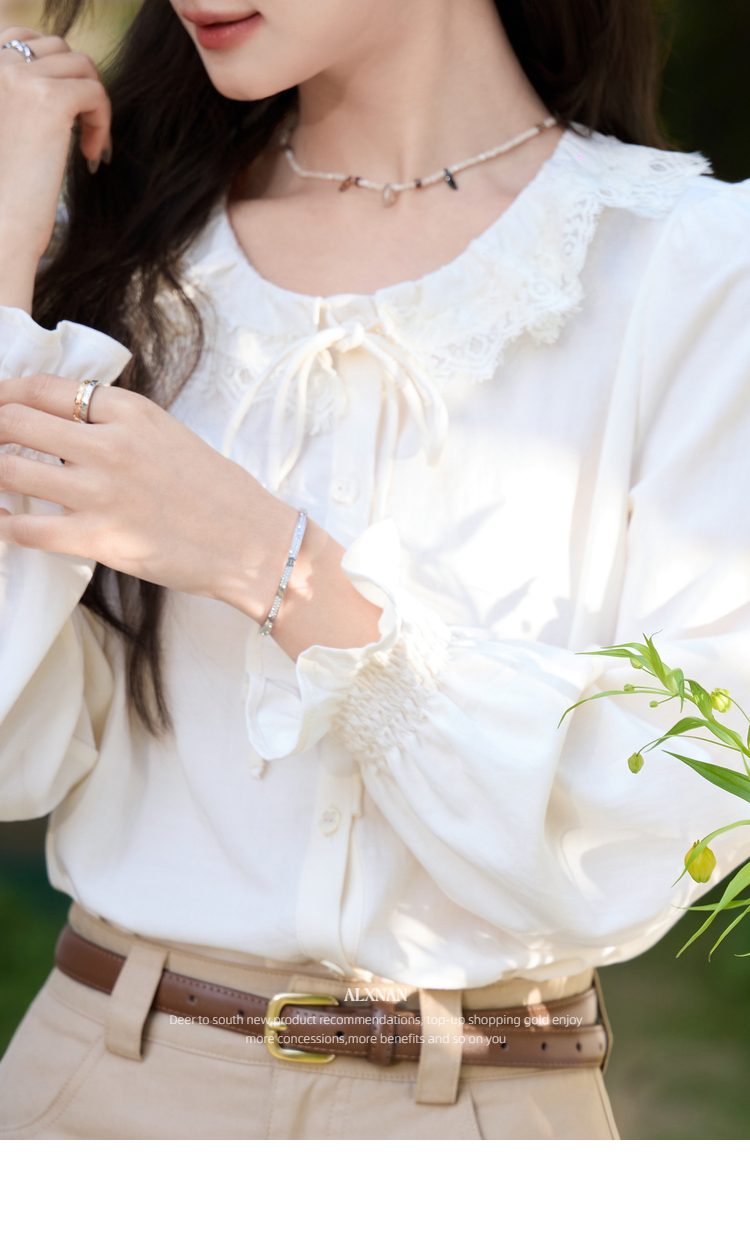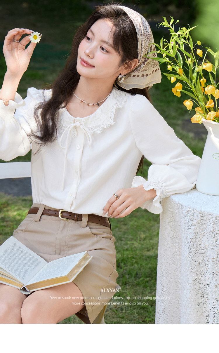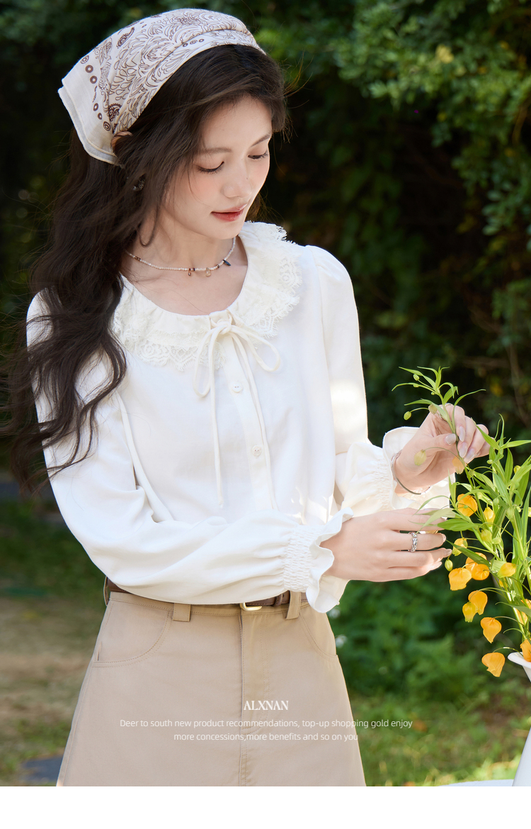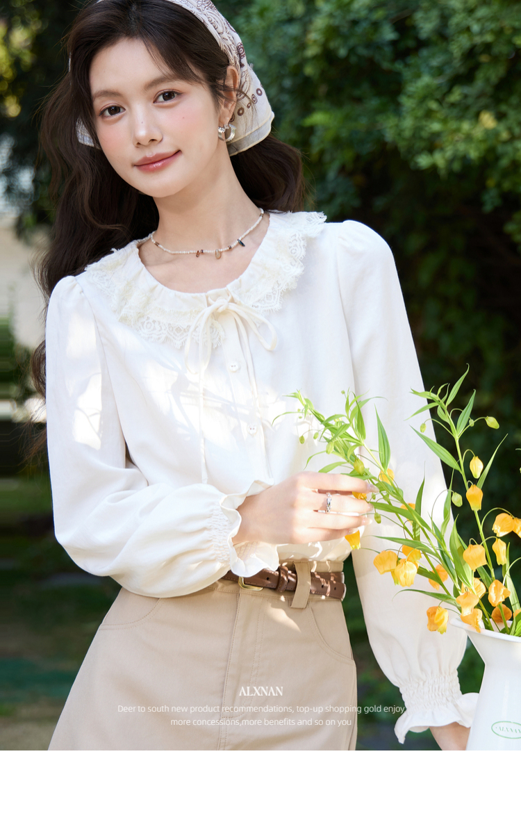 鹿向南「春日衬意」娃娃领蝴蝶结白色衬衫女春季新款宽松长袖上衣