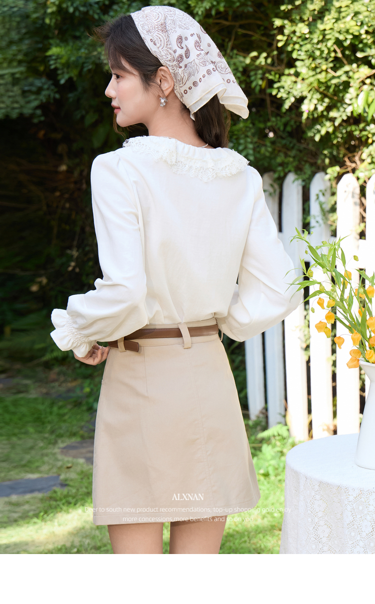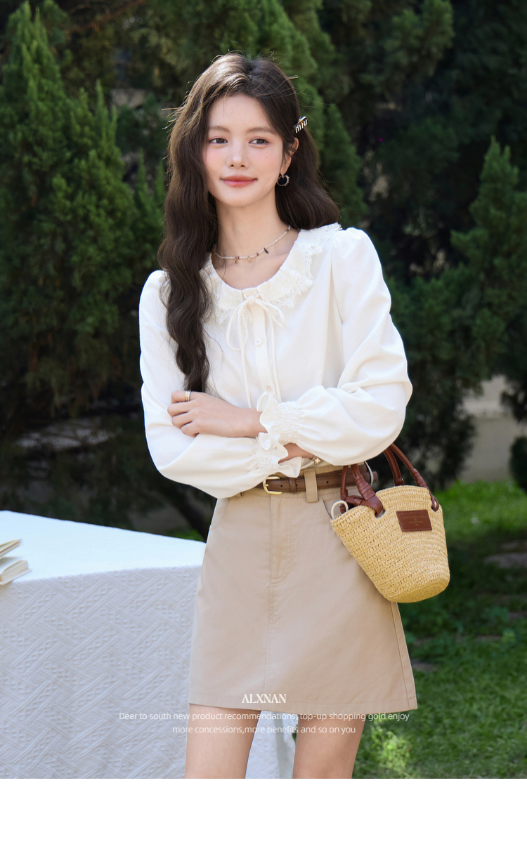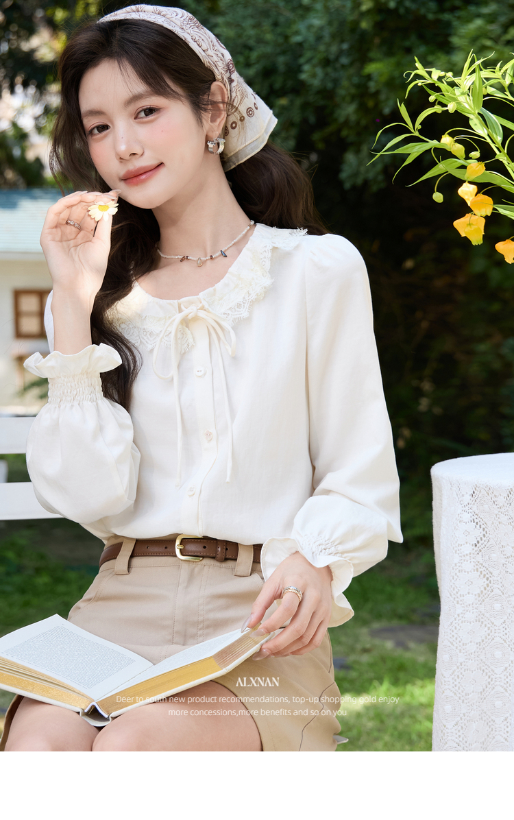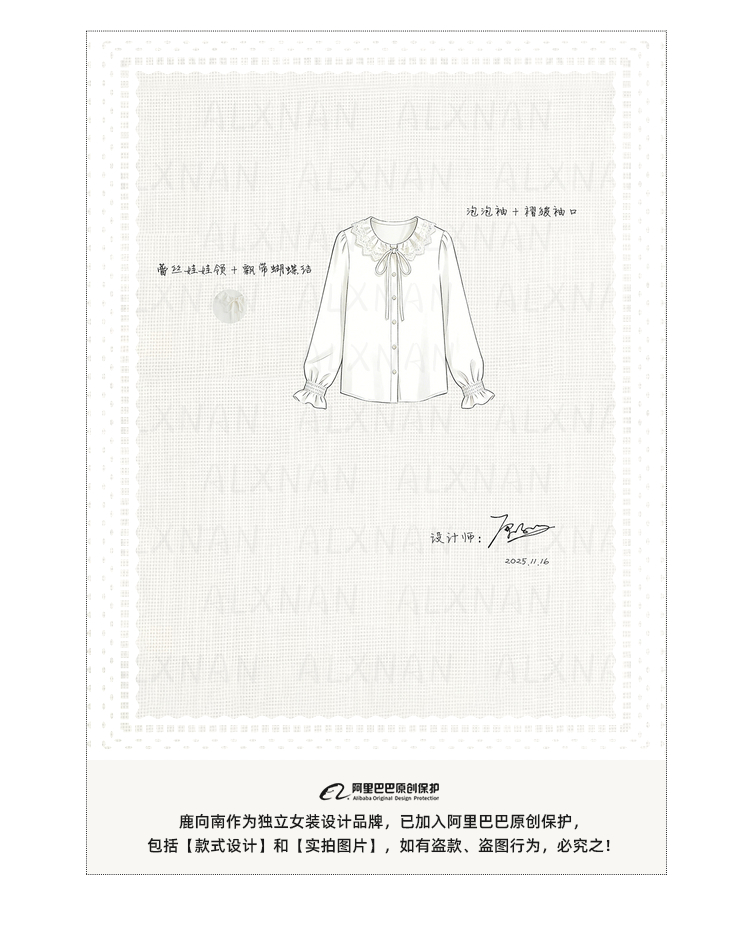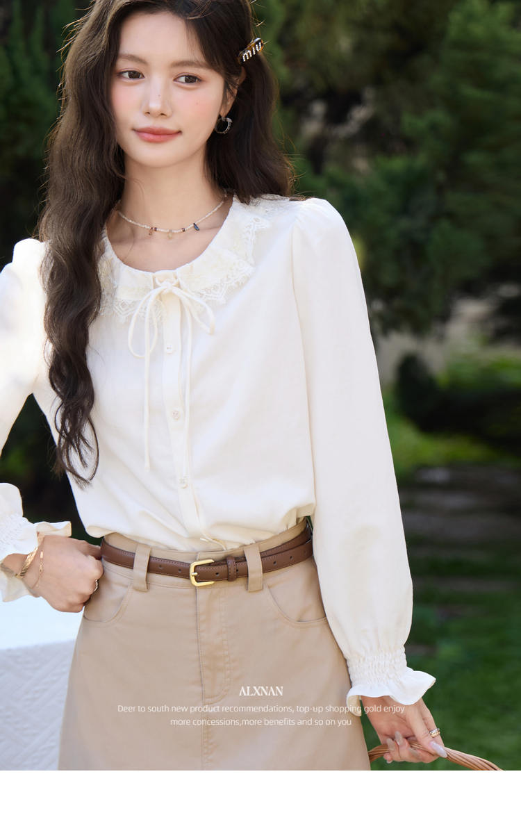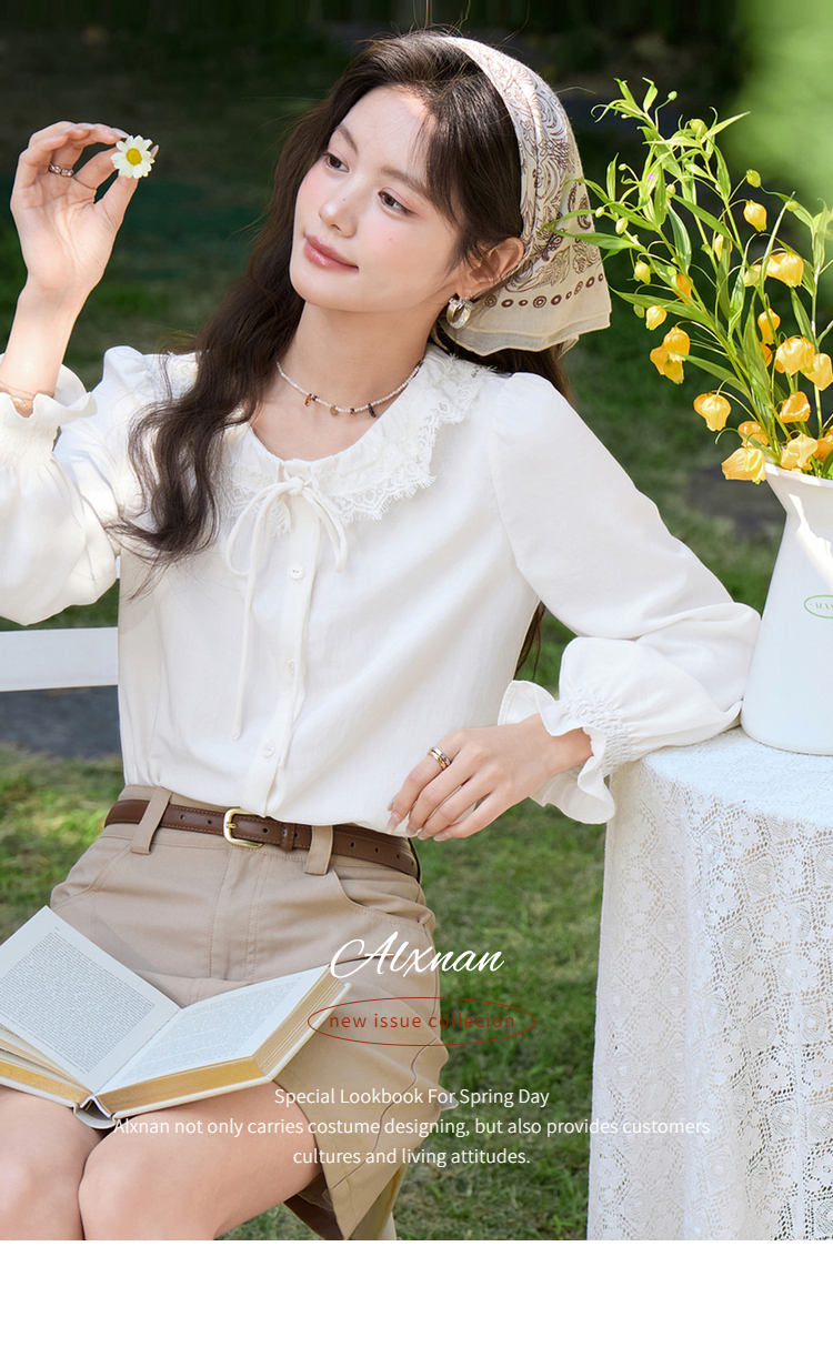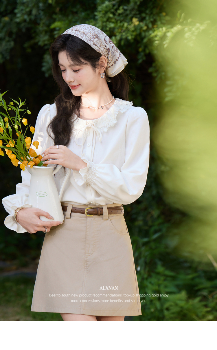 鹿向南「春日衬意」娃娃领蝴蝶结白色衬衫女春季新款宽松长袖上衣