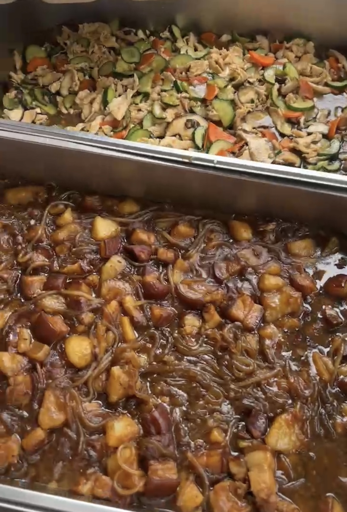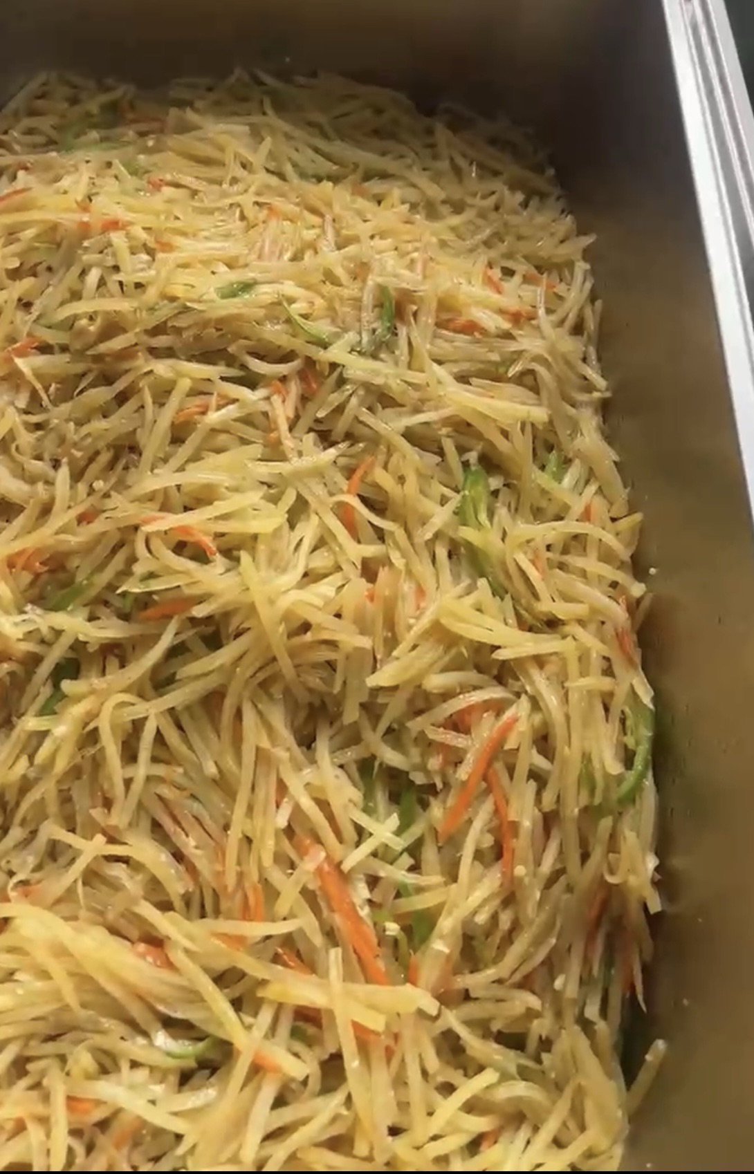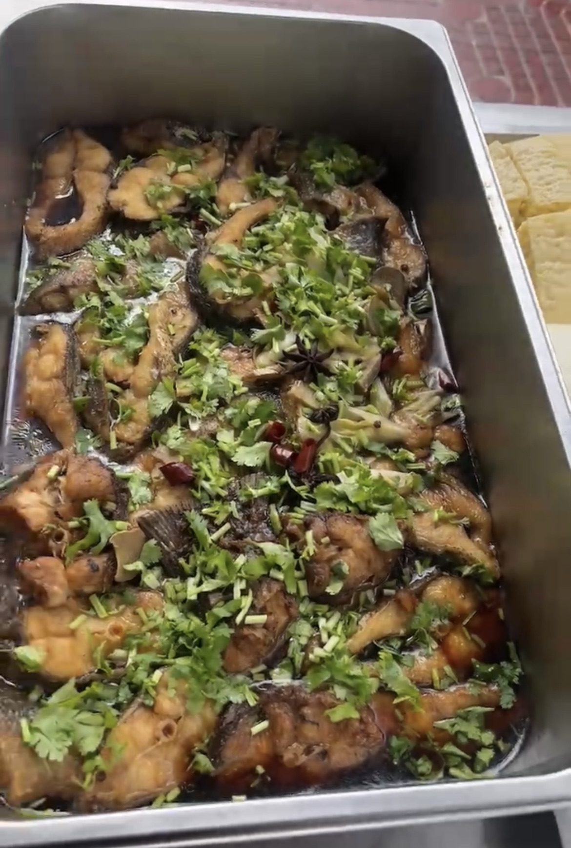 午餐是6菜一汤,晚餐是4菜一汤,三餐都有面食、米饭和粥。