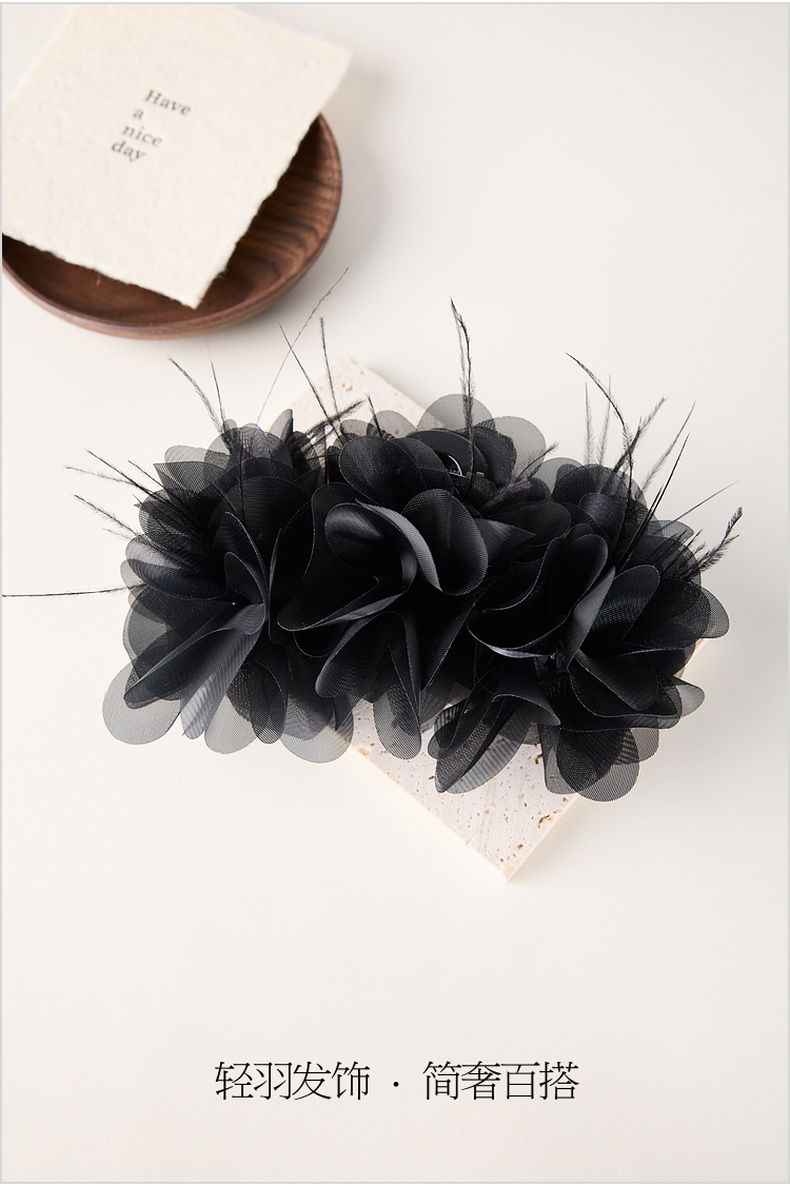 三彩2026新款火鸡毛装饰大抓夹暗黑轻奢小众氛围感个性时尚灵动女