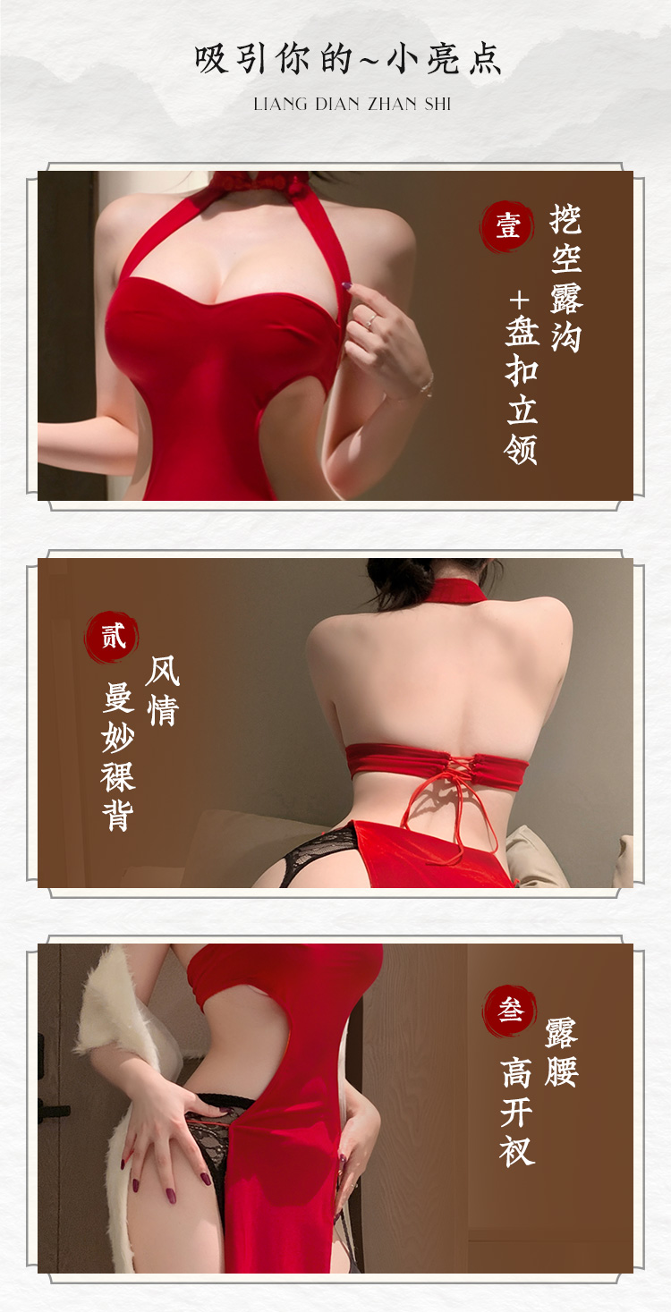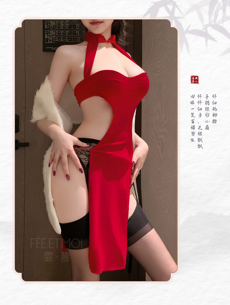 【情趣内衣】霏慕 高开衩分片绑带丝绒旗袍6701